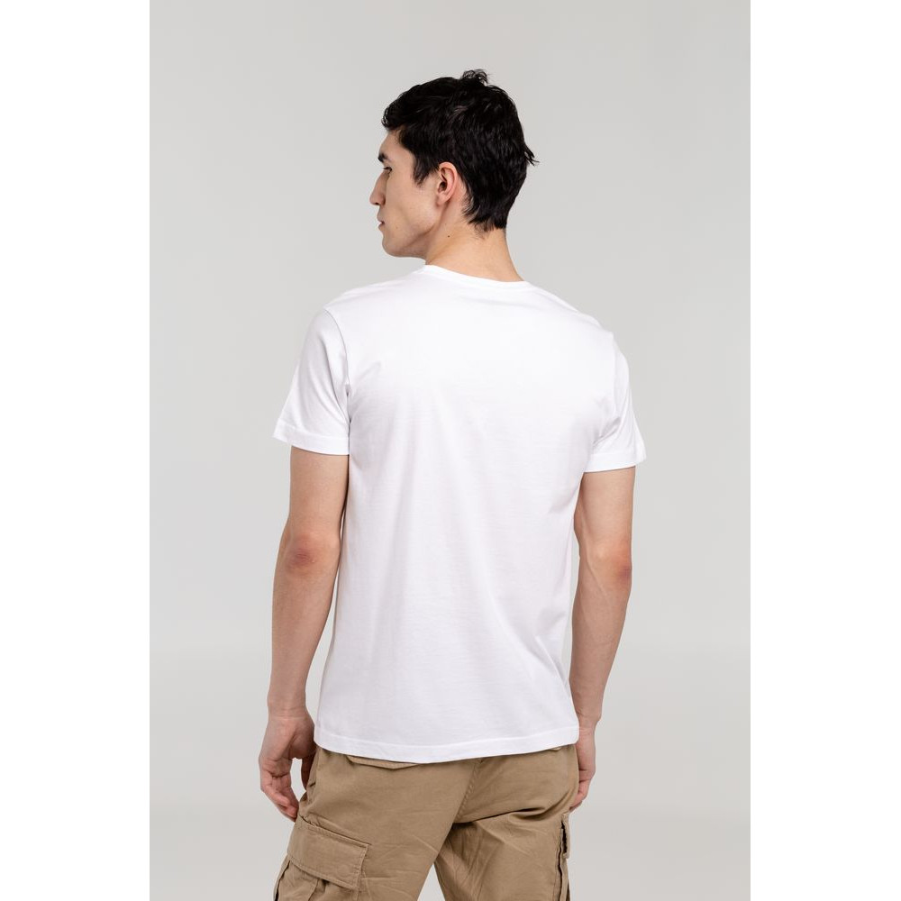 Мужская футболка с круглым вырезом. Двухслойная резинка предохраняет воротник от деформации после стирки.