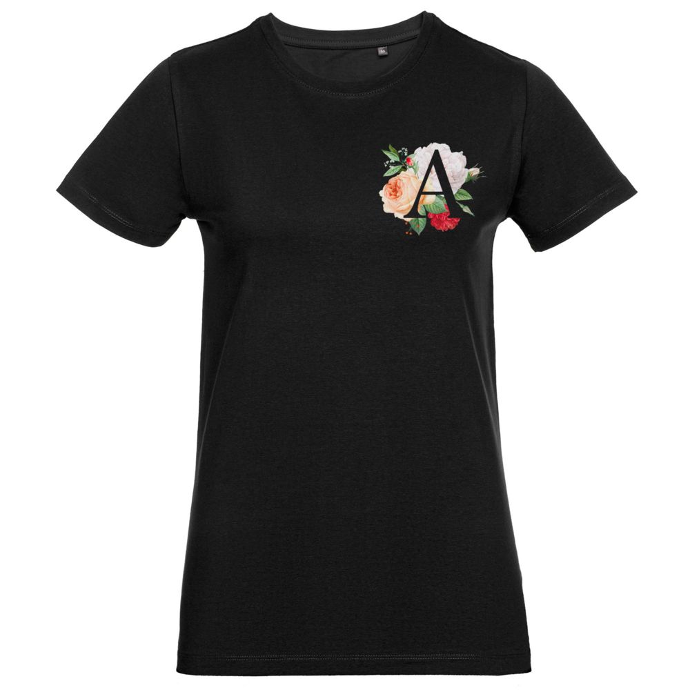 Футболка женская «Цветочная азбука: А», черная 1515 ₽