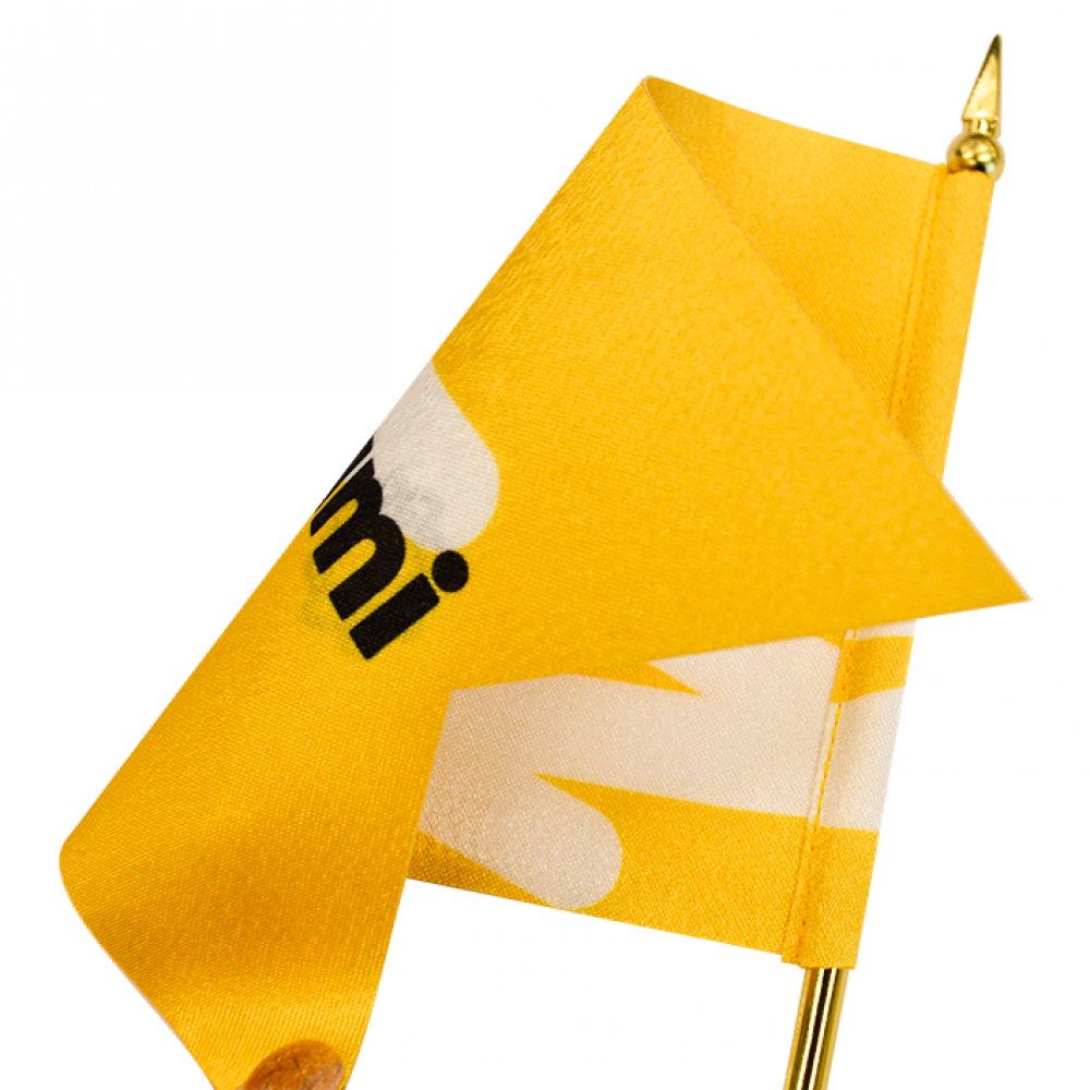 Флажок крепится на специальную настольную подставку с одним или несколькими штоками. Она может быть пластиковой или металлической по вашему выбору. Флагшток заказывается отдельно.