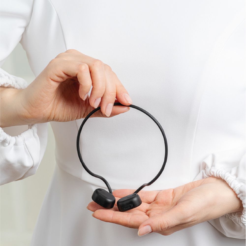 Беспроводные наушники с зашейной дужкой удобно сидят и не выпадают из ушей. Направленные динамики обеспечивают высокое качество звука. Лучше всего подходят для работы в офисе и прослушивания фоновой музыки.