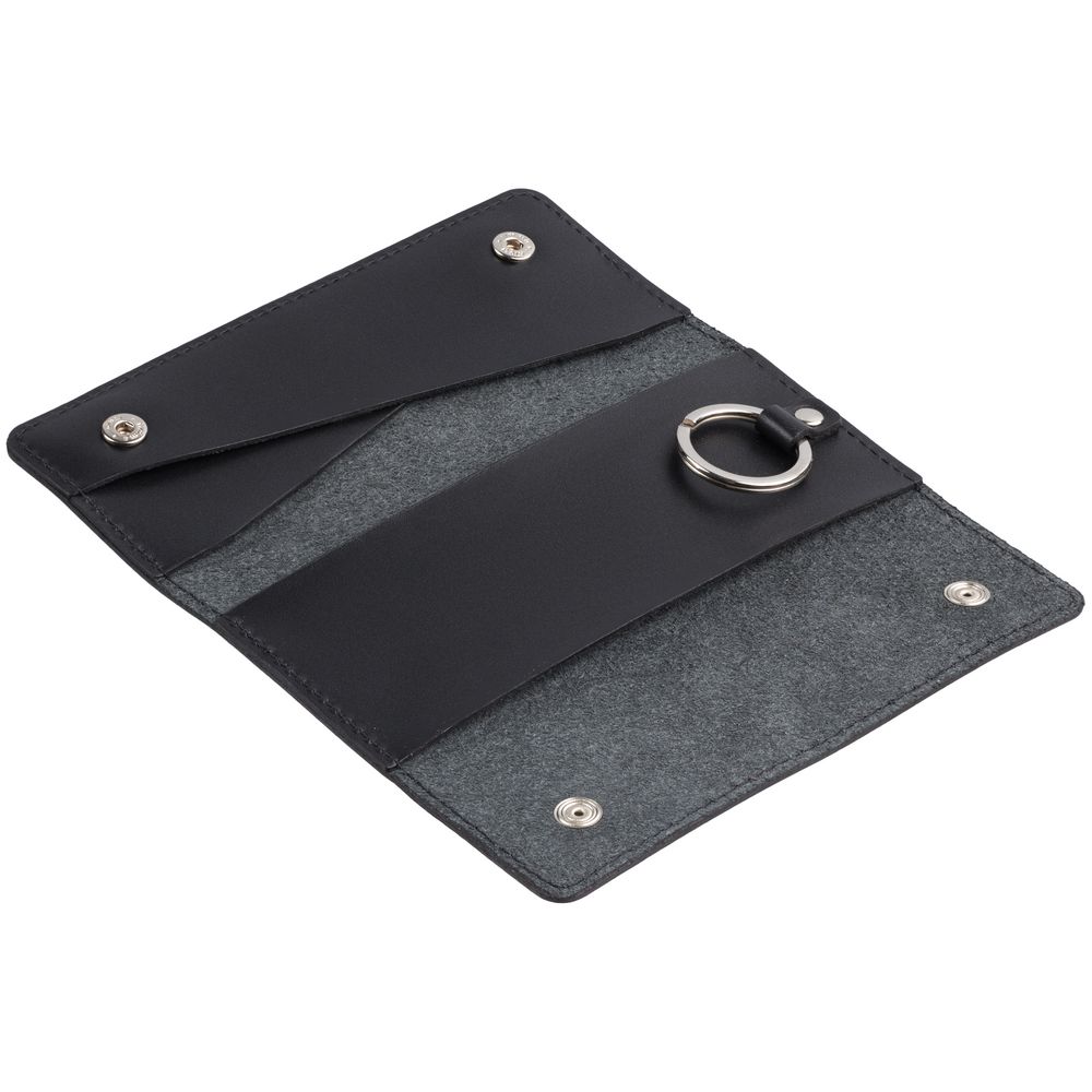 Внутри кольцо для крепления ключей длиной до 12 см. Застегивается на кнопки.