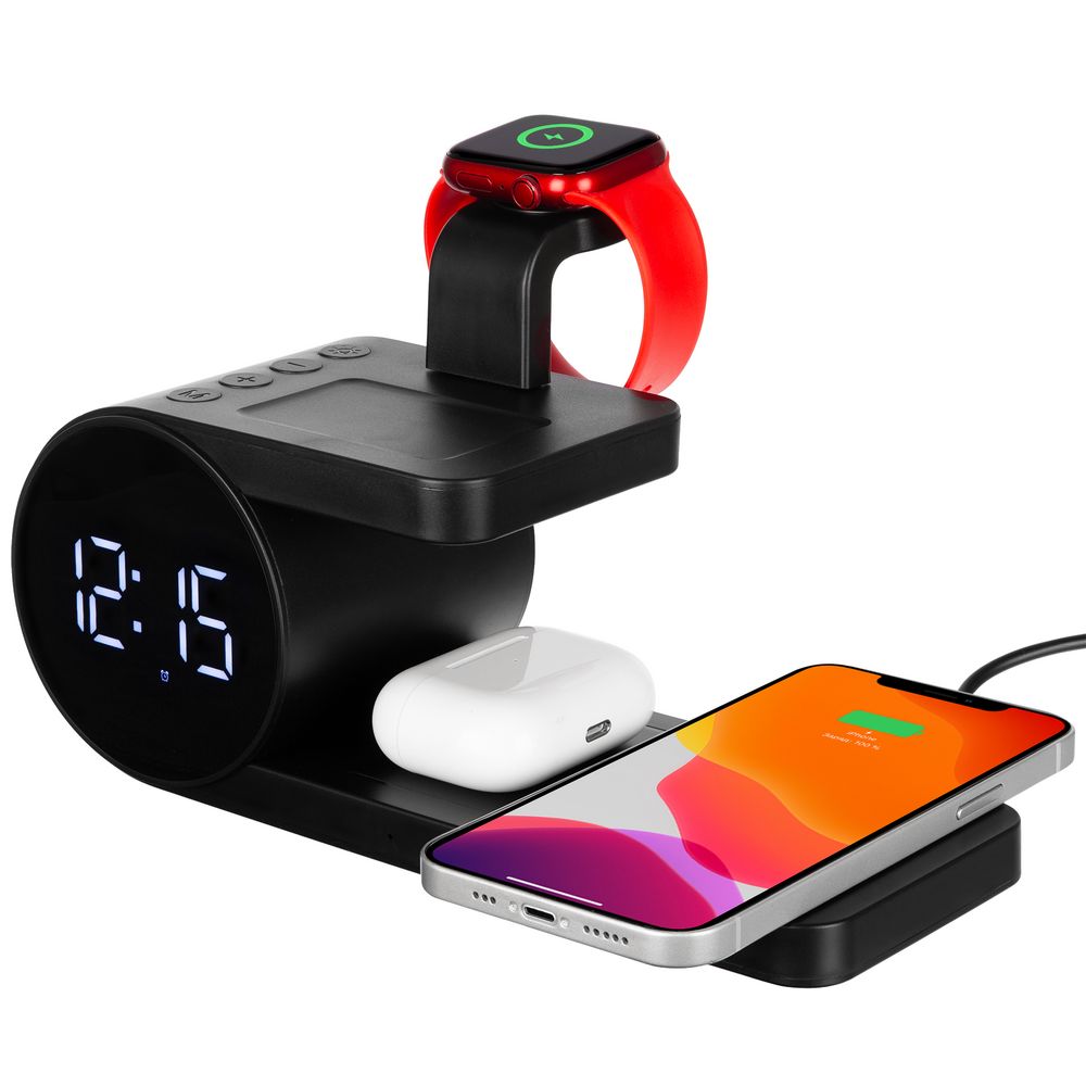 Станция беспроводной зарядки с часами fullStack, черная