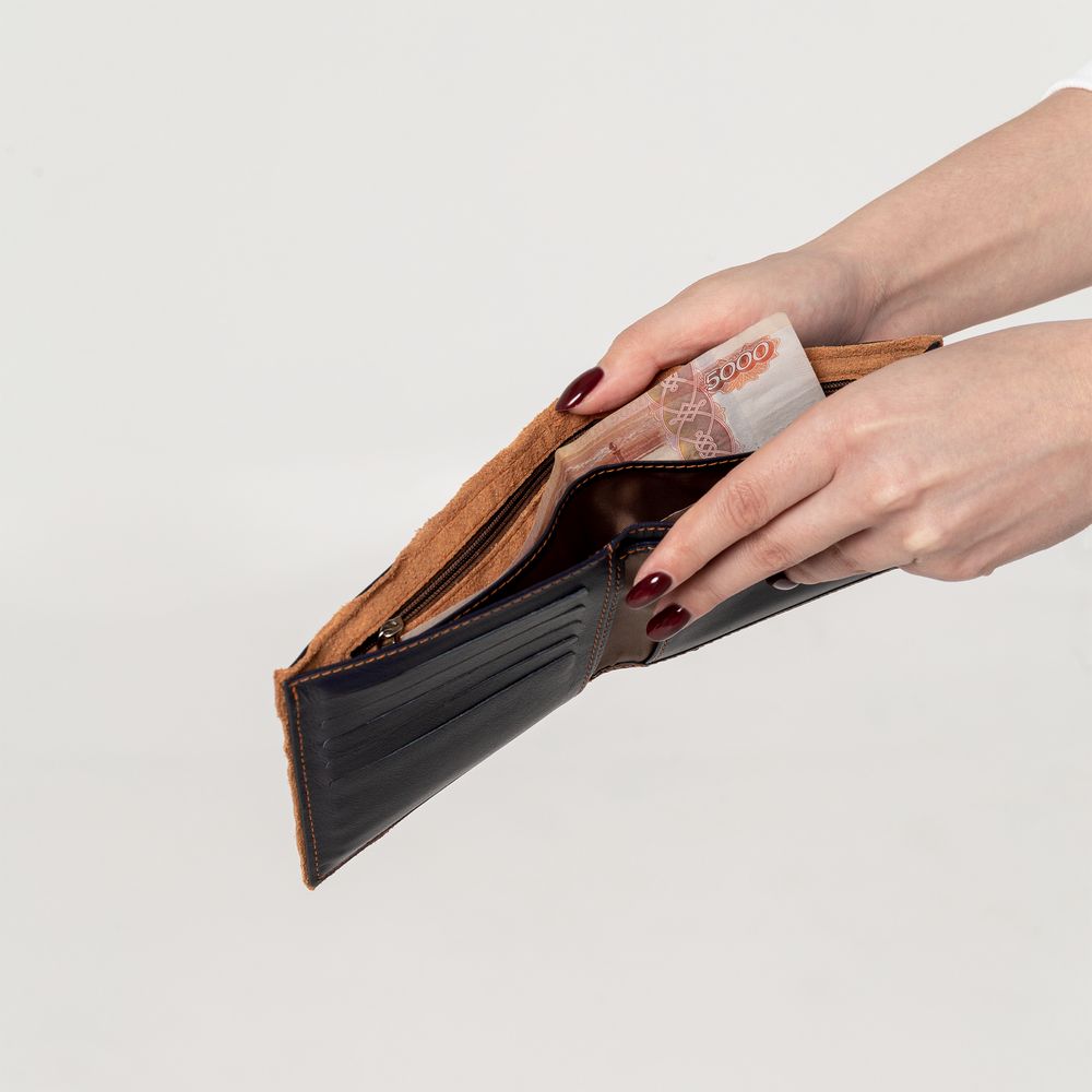 Двойное отделение для банкнот, карман для монет, съемное отделение для пластиковых карт, водительского удостоверения и пропуска.