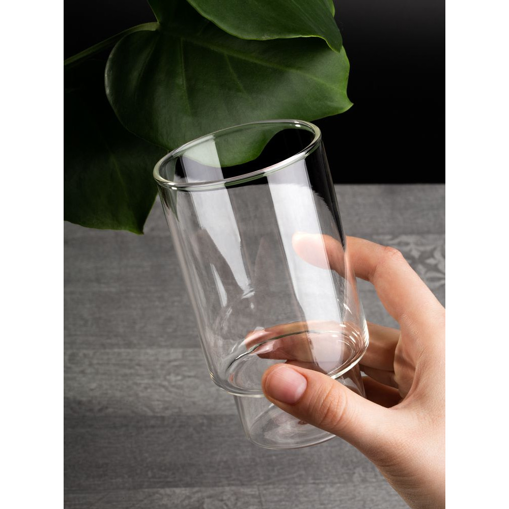 Бокал Thumbler с тонкими стенками из боросиликатного стекла идеален для подачи прохладительных напитков или айс-кофе. Оригинальная форма и минималистичный дизайн бокала гармонично впишутся в современный интерьер кухни или столовой.