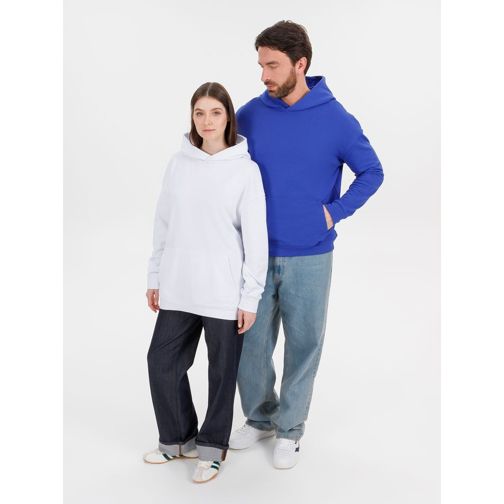 Худи унисекс со спущенным плечом и карманом-кенгуру расслабленного силуэта.