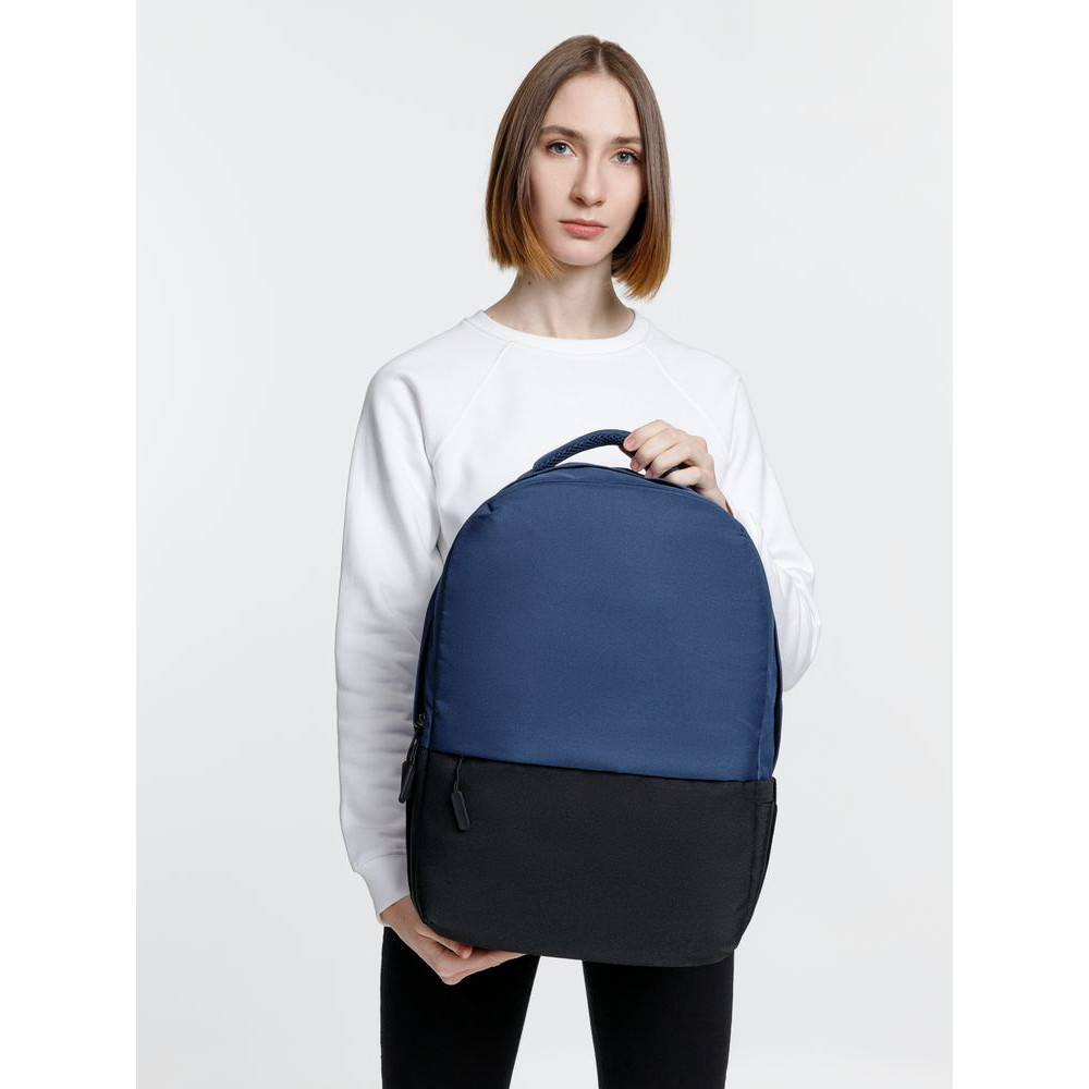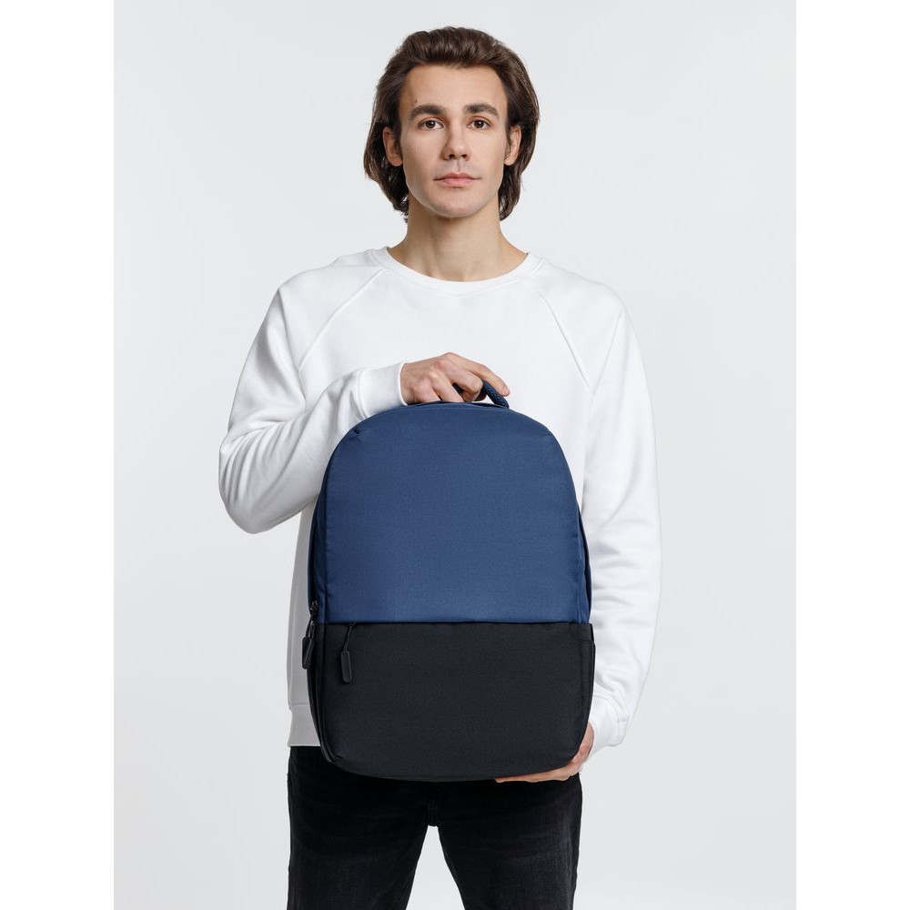 Двухцветное исполнение с темным низом и более светлым верхом, с одной стороны, помогает рюкзаку дольше сохранять опрятный внешний вид, а с другой — позволяет активнее и контрастнее выделить логотип компании.