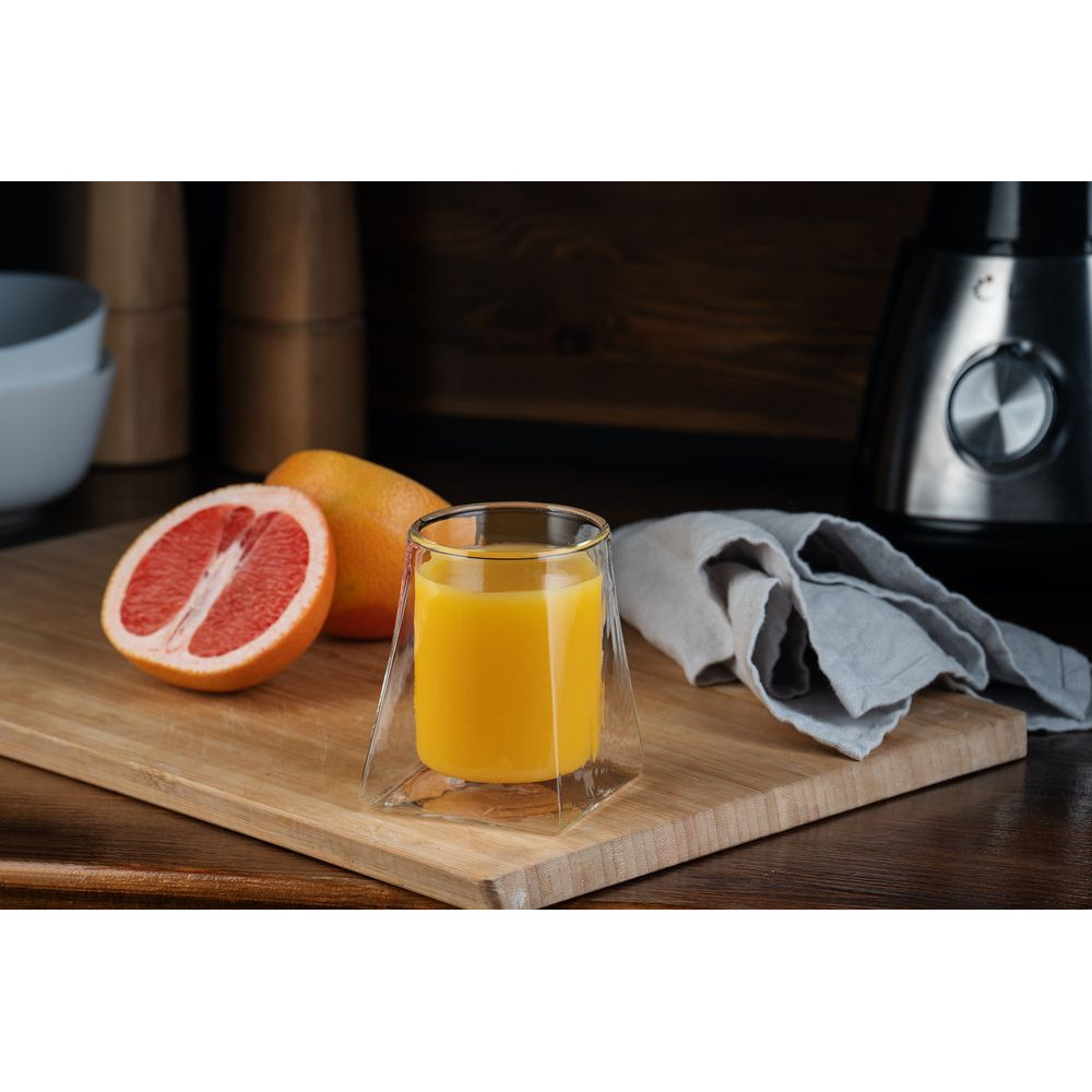 Стакан Quadroni подходит для подачи как горячих, так и холодных напитков. Благодаря двойным стенкам из тонкого боросиликатного стекла стакан практически ничего не весит, отлично сохраняет тепло и не обжигает руки.