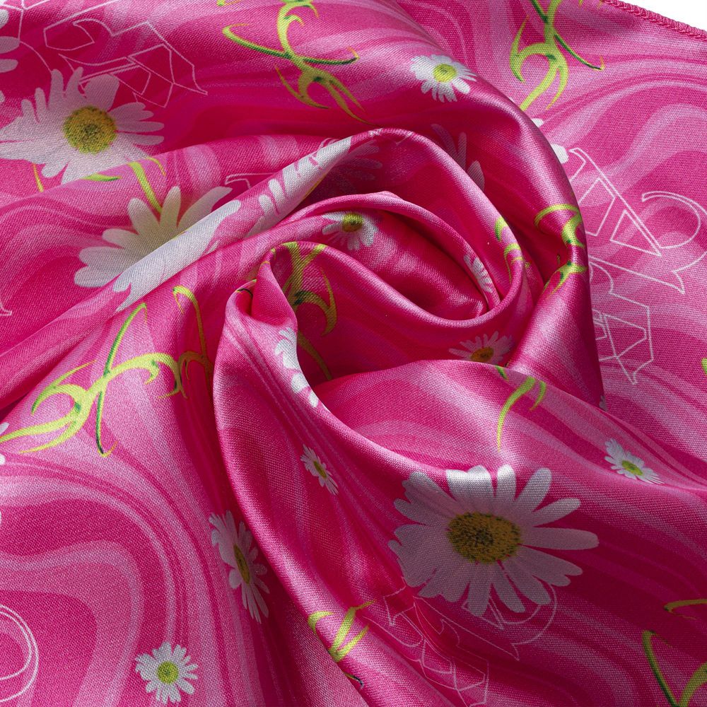 Платок из шармуса, подходящего для сублимационной печати. Края обработаны оверлоком.