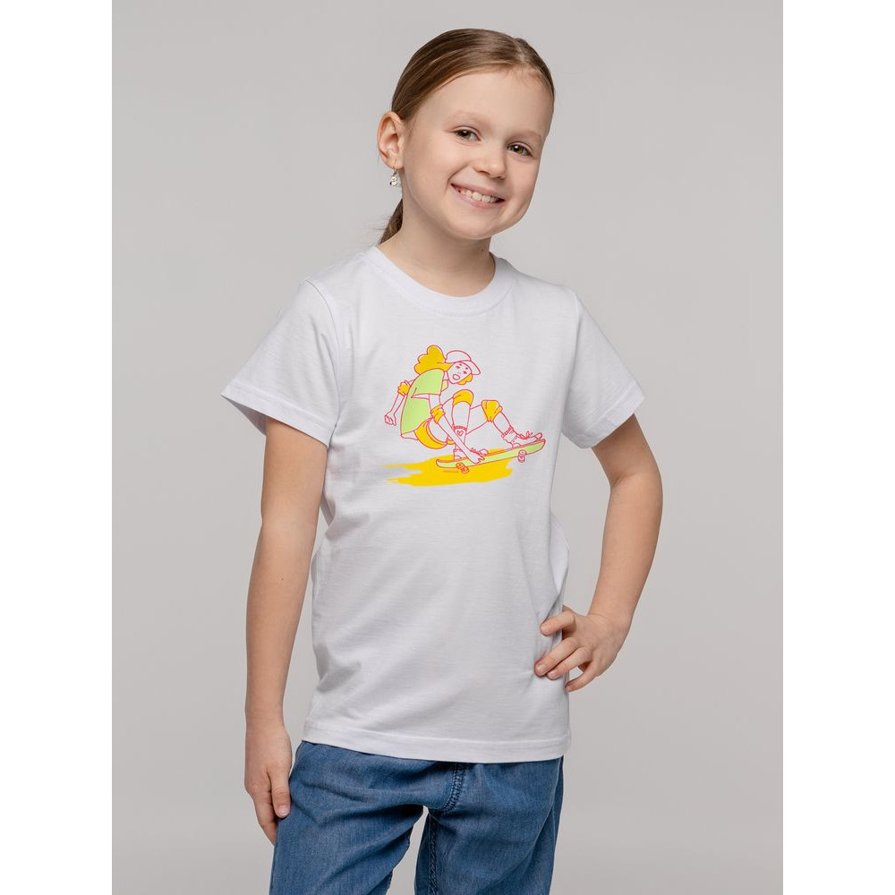 Кроеная детская футболка с круглым воротом-резинкой (рибана 1х1 с лайкрой). Высокое качество материалов: полотно джерси (кулирная гладь), прошедшее предварительную термоусадку; нить 30/1; особо гладкая гребенная пряжа. Активное крашение полотна.