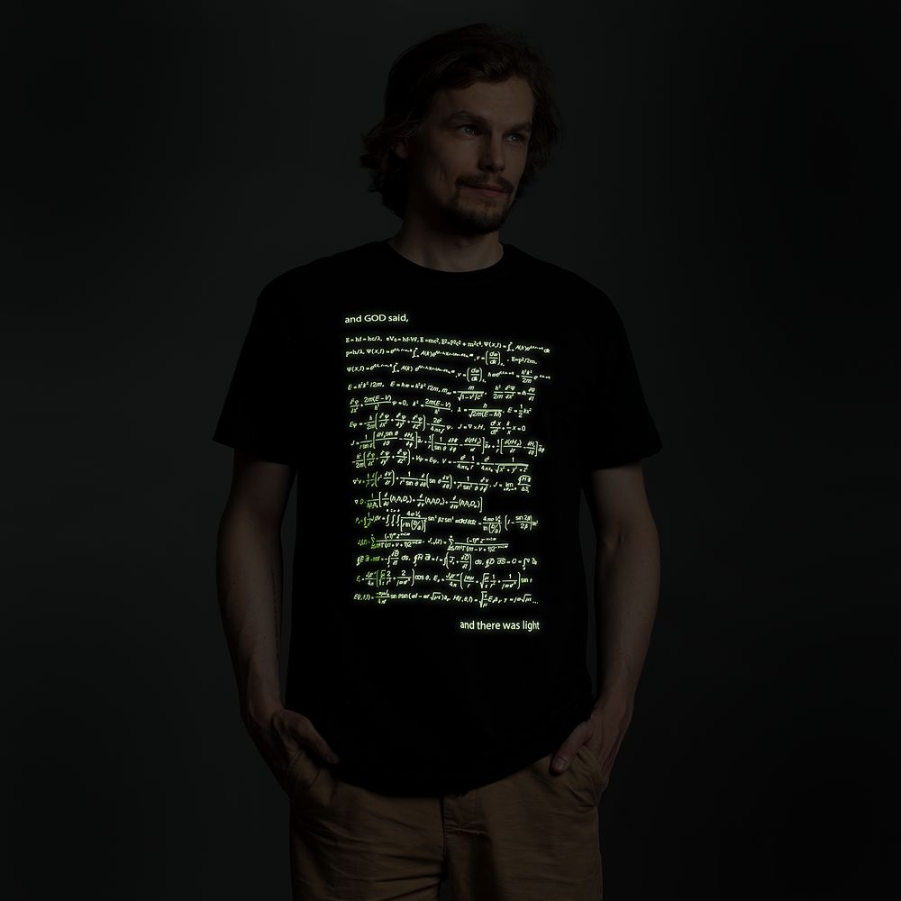 Принт выполнен светонакопительной краской, которая вбирает свет из внешних источников (естественных или искусственных) и светится в темноте.