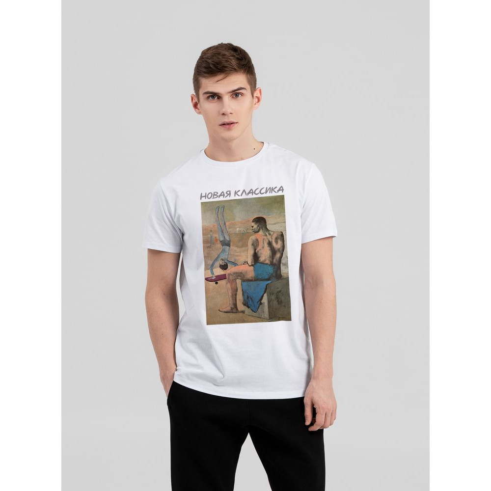 Некоторые современные вещи настолько прочно вошли в наш быт, что, кажется, они существовали всегда. А может так и было? Коллекция «Новая классика» — это попытка разглядеть будущее в прошлом!Классическая кроеная футболка унисекс из гребенного хлопка. Благодаря тонким и длинным волокнам хлопка ткань футболки отличается гладкостью, ровностью и прочностью, отлично сохраняет форму, не деформируются и не выцветает при стирке. Горловина выполнена резинкой 1x1. Слегка приталенный силуэт.