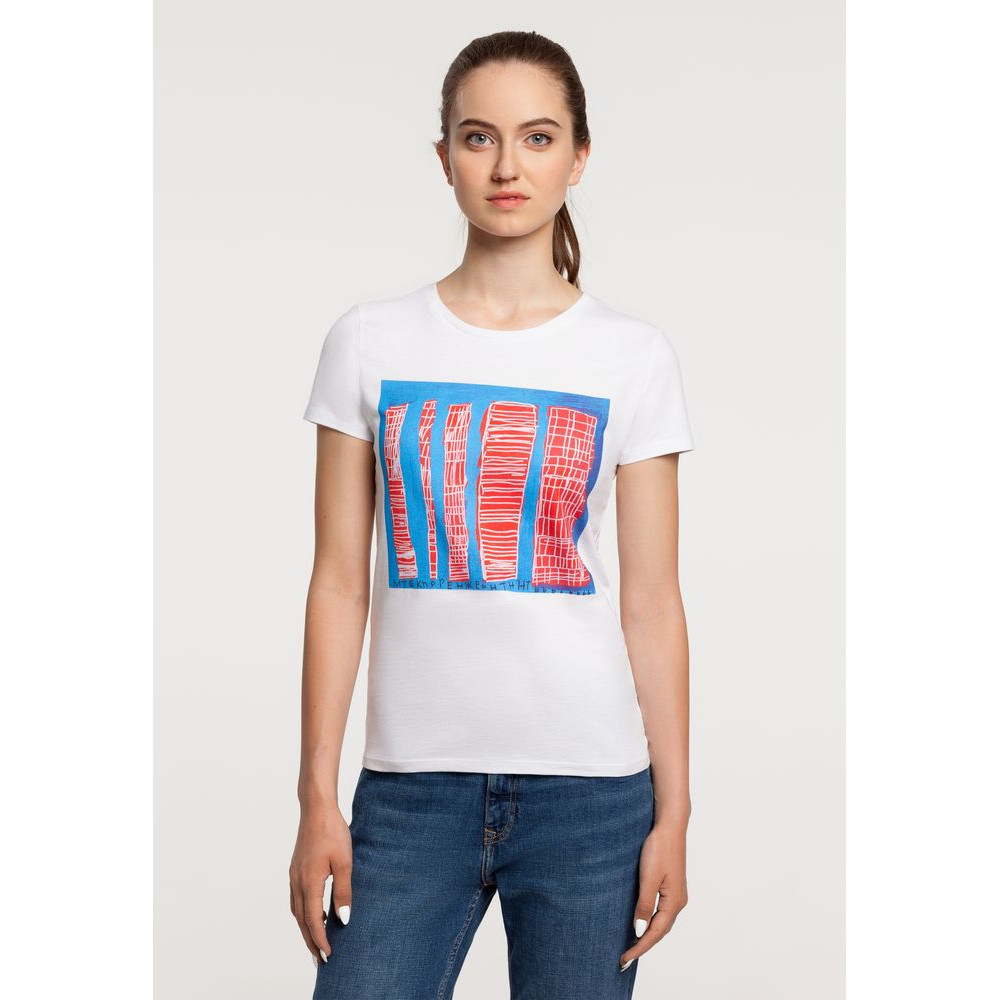 Кроеная футболка приталенного силуэта с круглым вырезом.