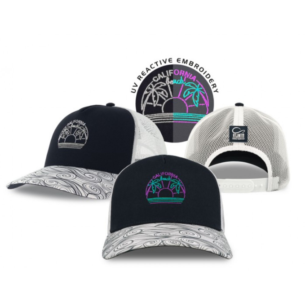 Специальная УФ-чувствительная вышивка на переднем клину (меняет цвет на солнце от бежевого до фуксии)
