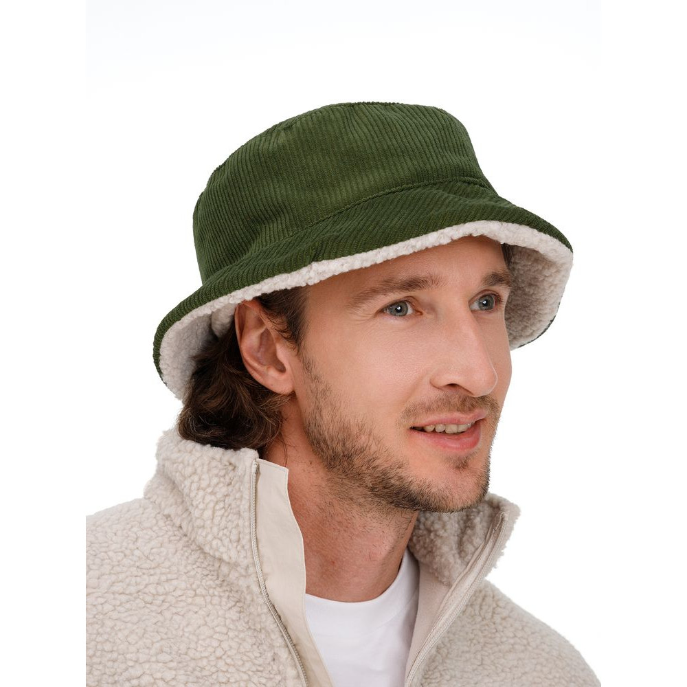 Панама Bucket двусторонняя утепленная, хаки с бежевым