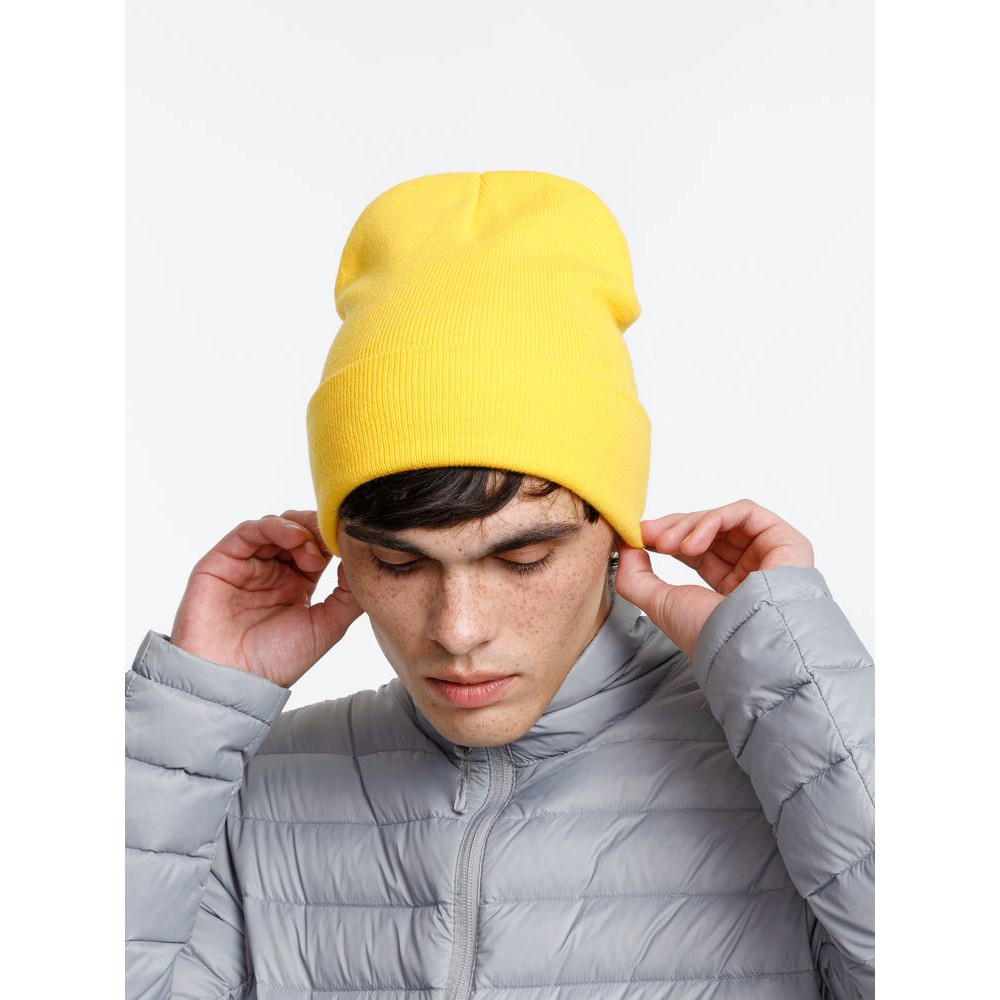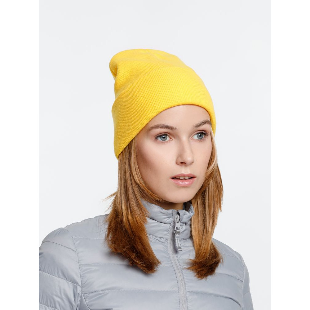 Двухслойная шапка из акриловой пряжи с регулируемым отворотом 7–10 см.
