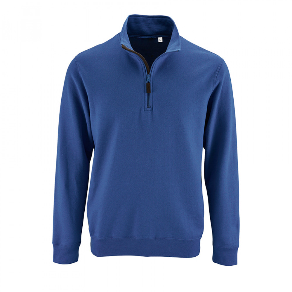Мужской свитшот с начесом и воротником-стойкой на молнии. Манжеты и низ изделия обработаны резинкой. Внутренняя планка контрастного цвета. Лейбл с размером находится во шве горловины, лейбл производителя вшит в боковом шве изнутри.