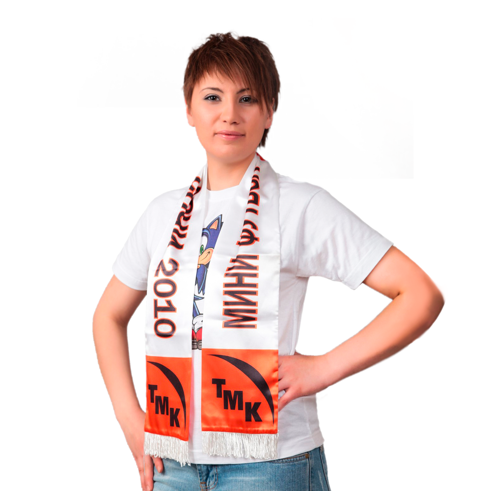 Шарф атласный двуслойный с бахромой и полной запечаткой