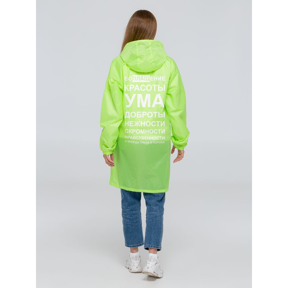 Плащ-дождевик из ткани таффета на молнии с капюшоном. Складывается в мешочек — удобно брать с собой.