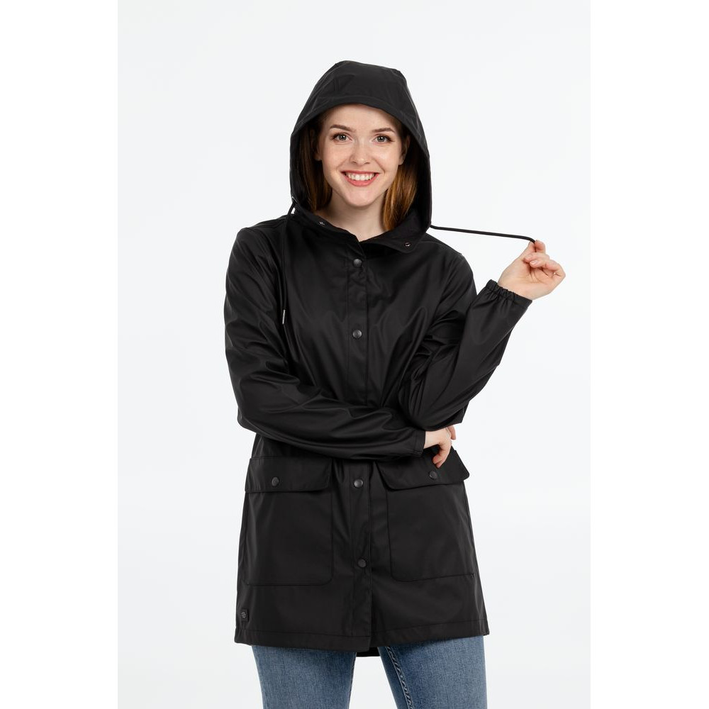 Стильный и практичный женский дождевик на кнопках из матового водонепроницаемого и ветрозащитного материала. Благодаря сварке ультразвуком швы абсолютно водостойкие. Карманы защищены от дождя накладными клапанами.