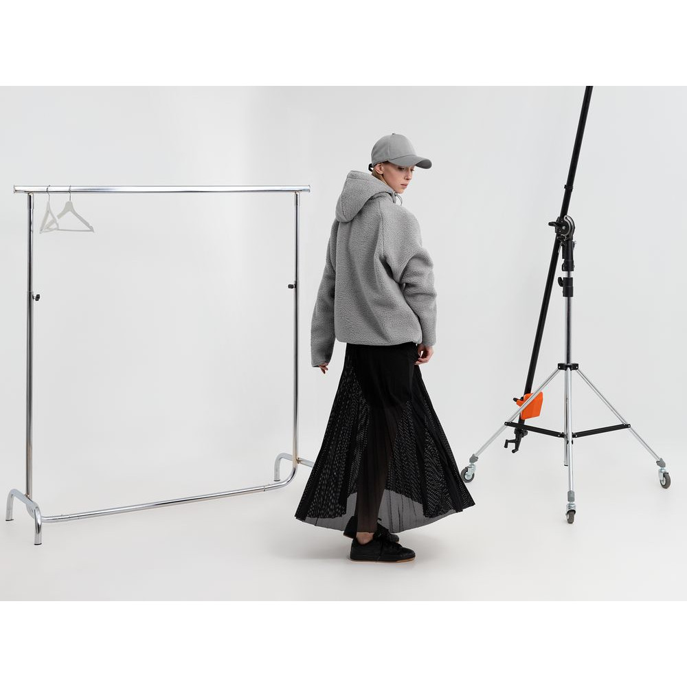 • Резинка с утяжкой на капюшоне и по низу изделия