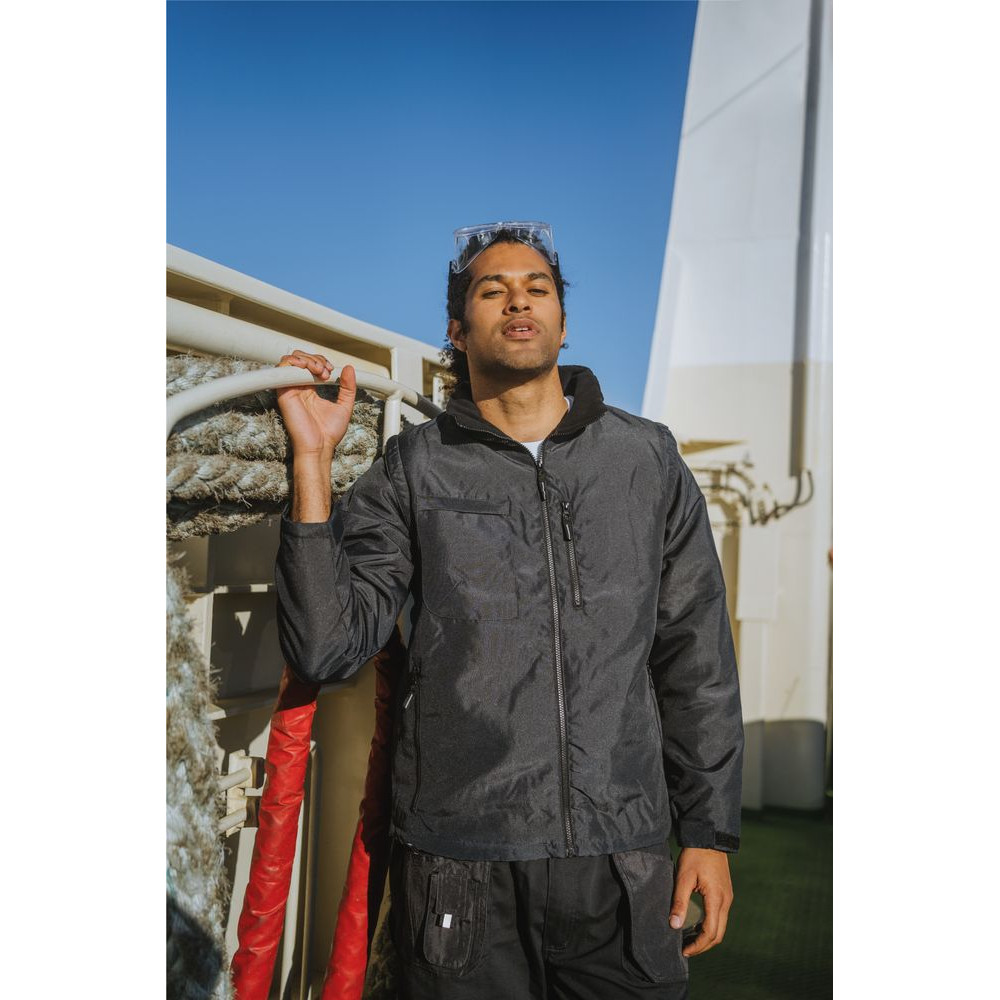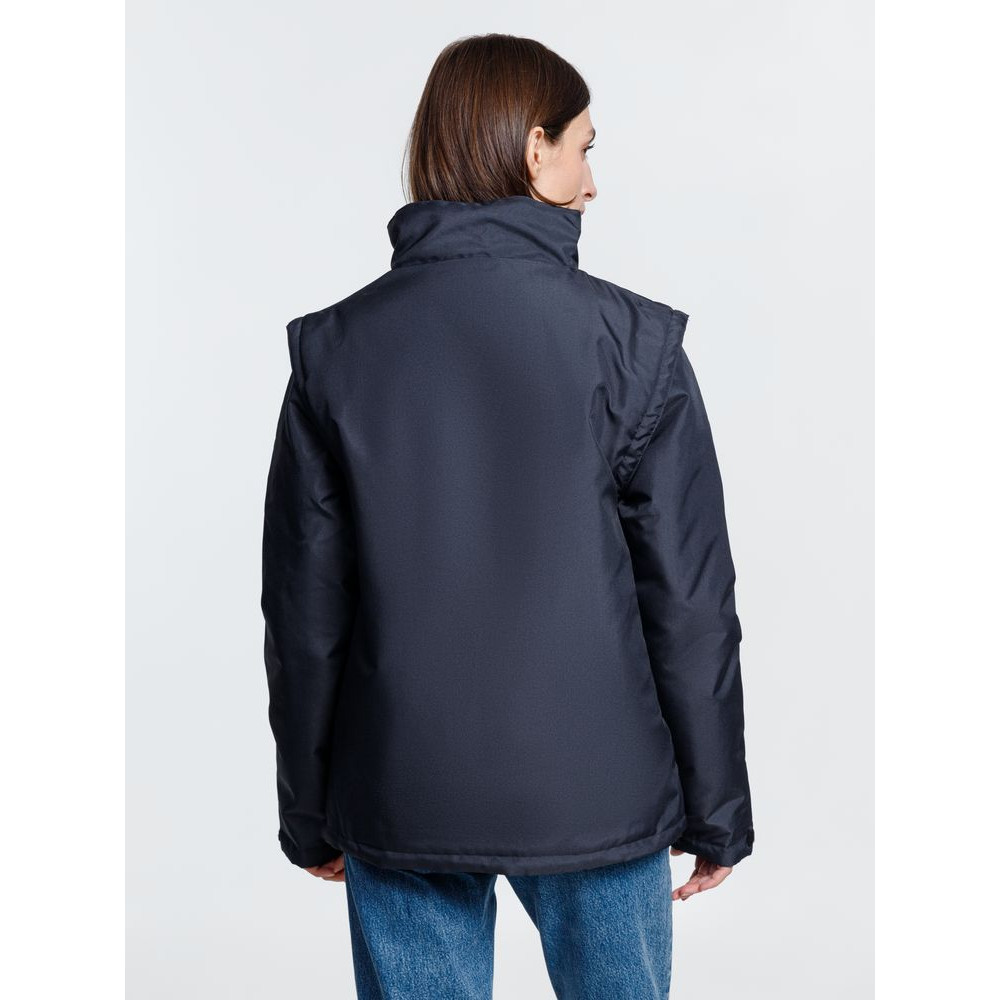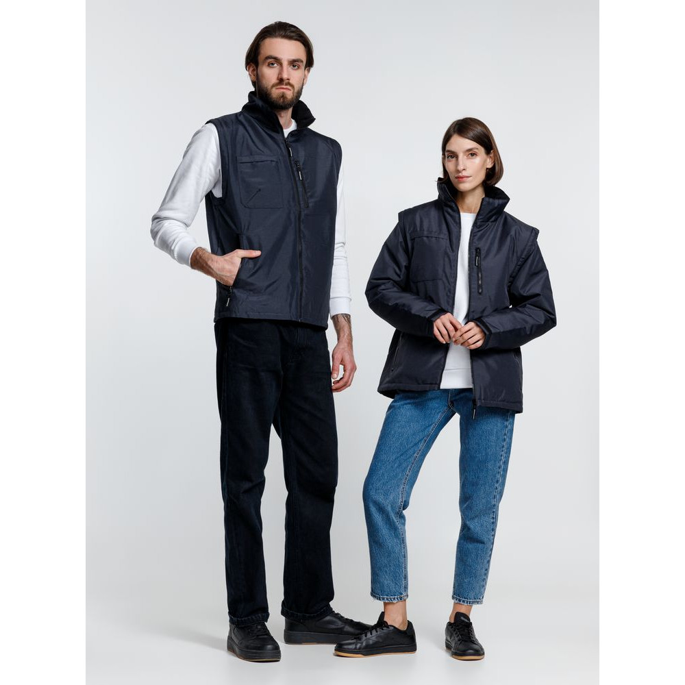 Куртка-трансформер, которая превращается в утепленный жилет. Выполнена из ткани оксфорд с водоотталкивающим покрытием. Модель унисекс.