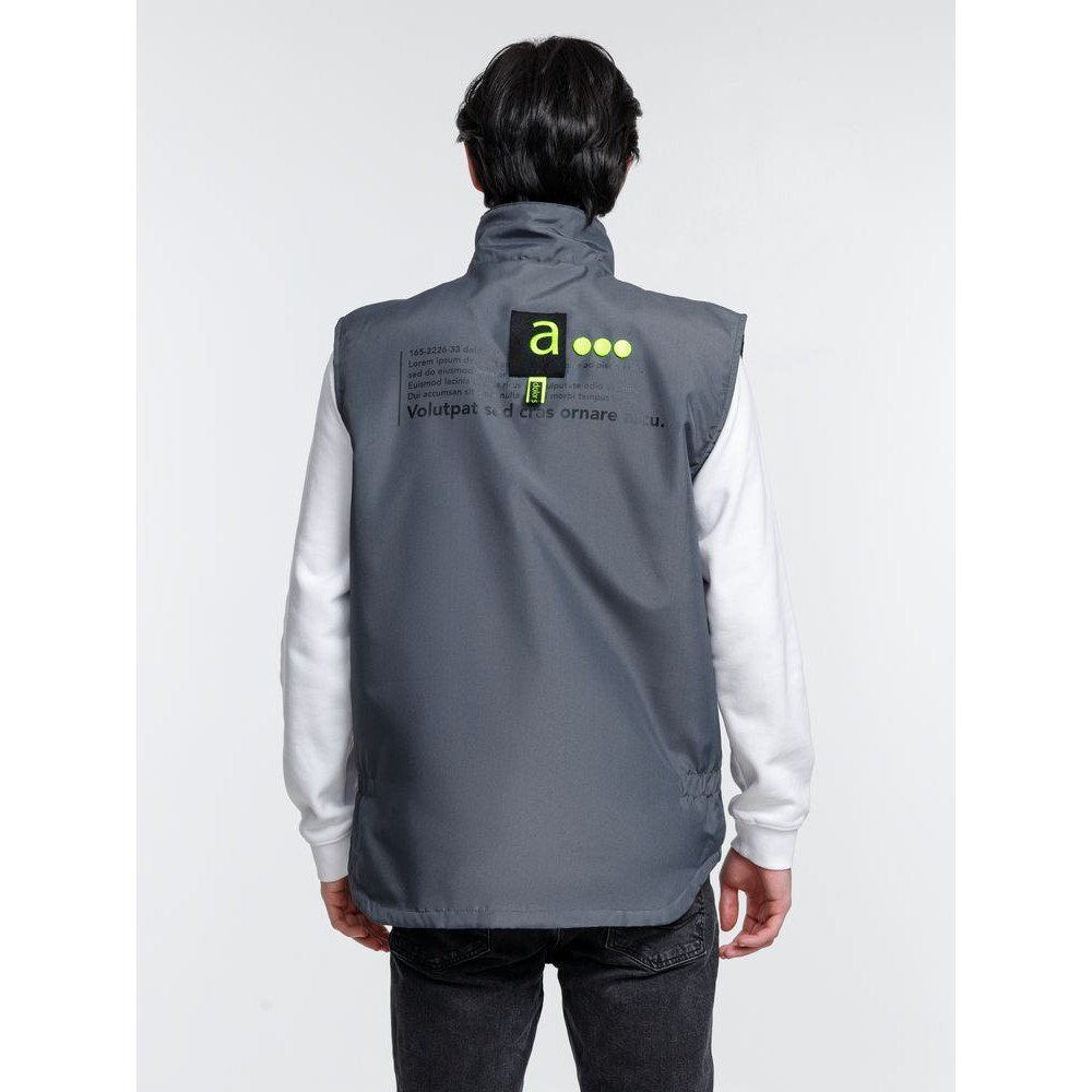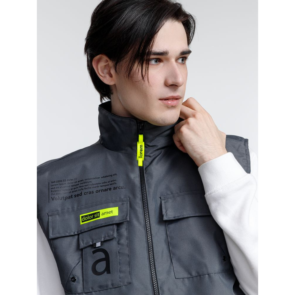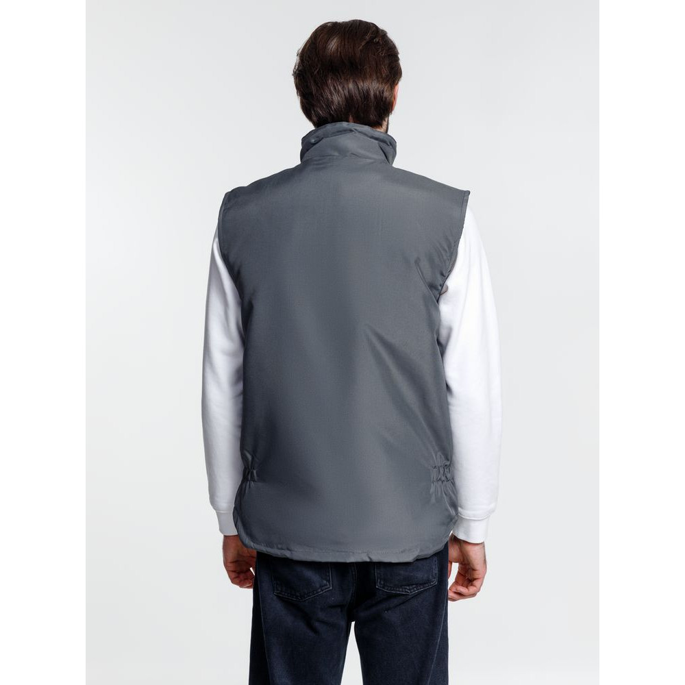 Мужской утепленный жилет с воротником-стойкой и удлиненной спинкой. Выполнен из ткани оксфорд с водоотталкивающим покрытием.