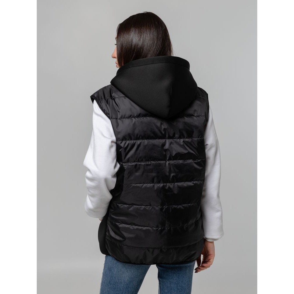 Утепленный жилет с капюшоном и боковыми вставками из неопрена стильно выглядит, защищает от холода и ветра, а также удачно садится на разные типы фигуры.