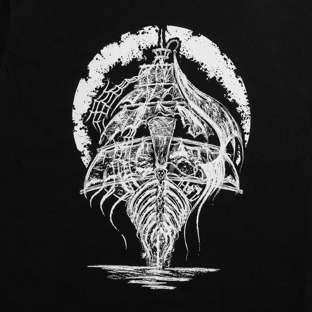 Для моряков появление загадочного «Летучего Голландца» считалось плохим предзнаменованием. Другое дело — одноименный принт, по исполнению напоминающий настоящую старинную гравюру. Только для несуеверных и сильных духом.Бесшовная футболка с круглым вырезом.