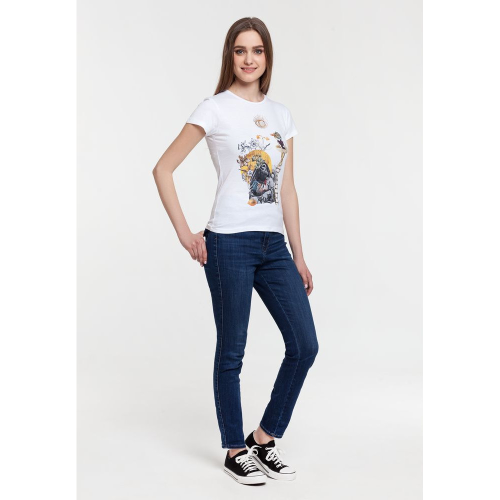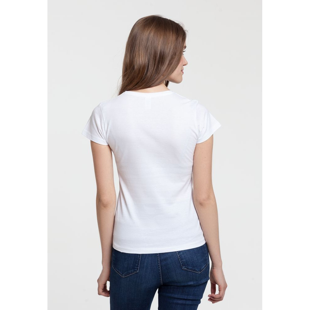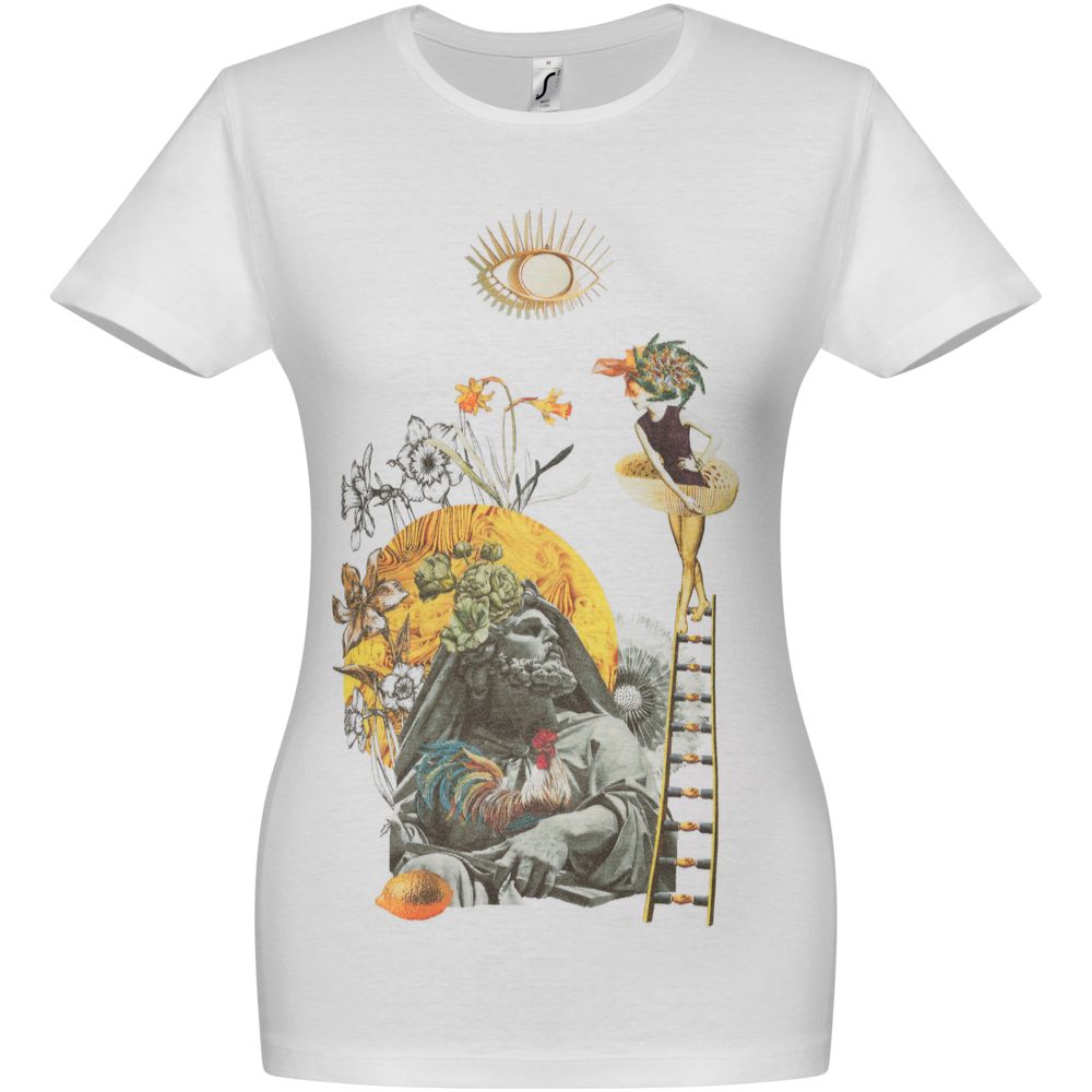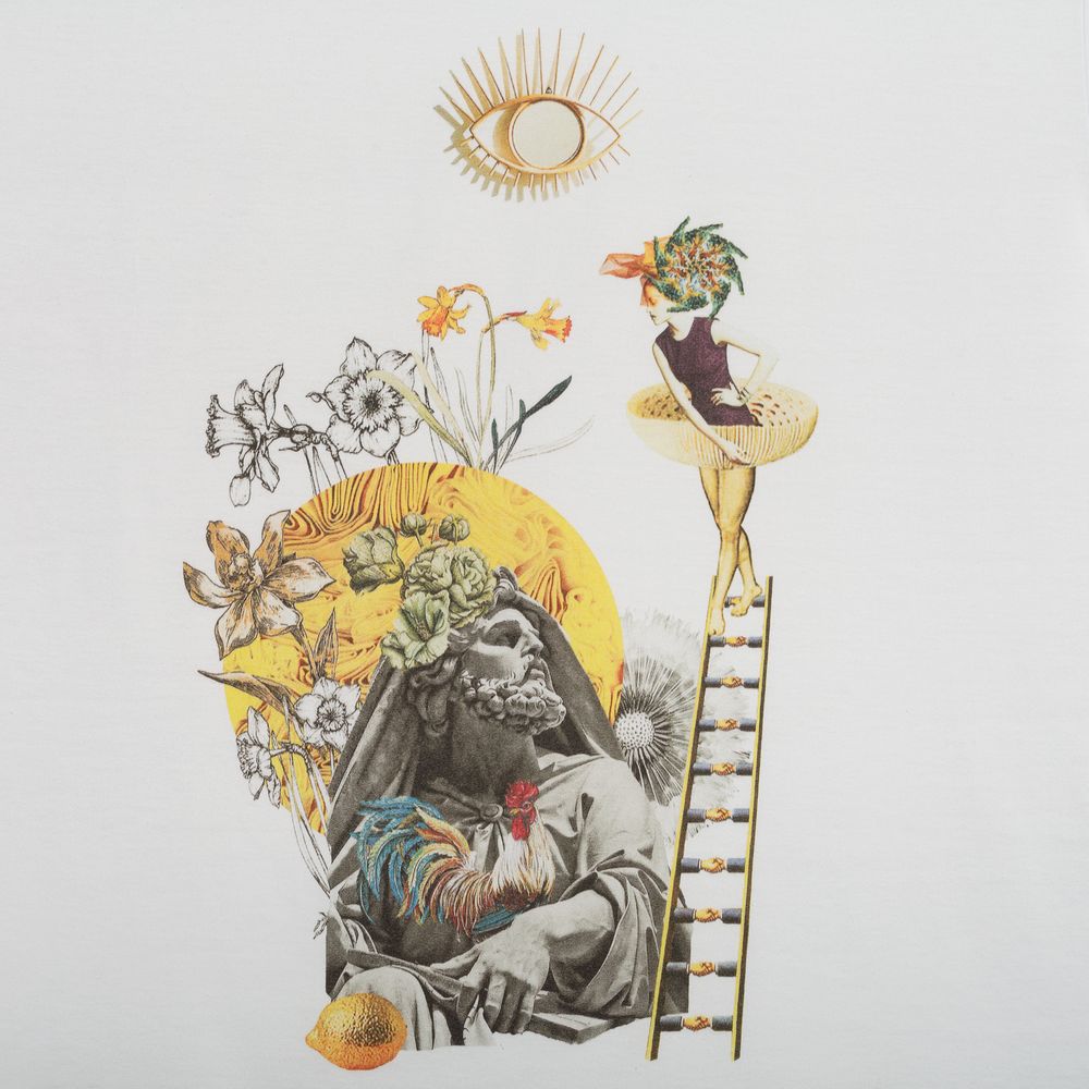 Кроеная футболка с боковыми швами и тонким воротом из джерси. Укрепляющая тесьма по вороту.