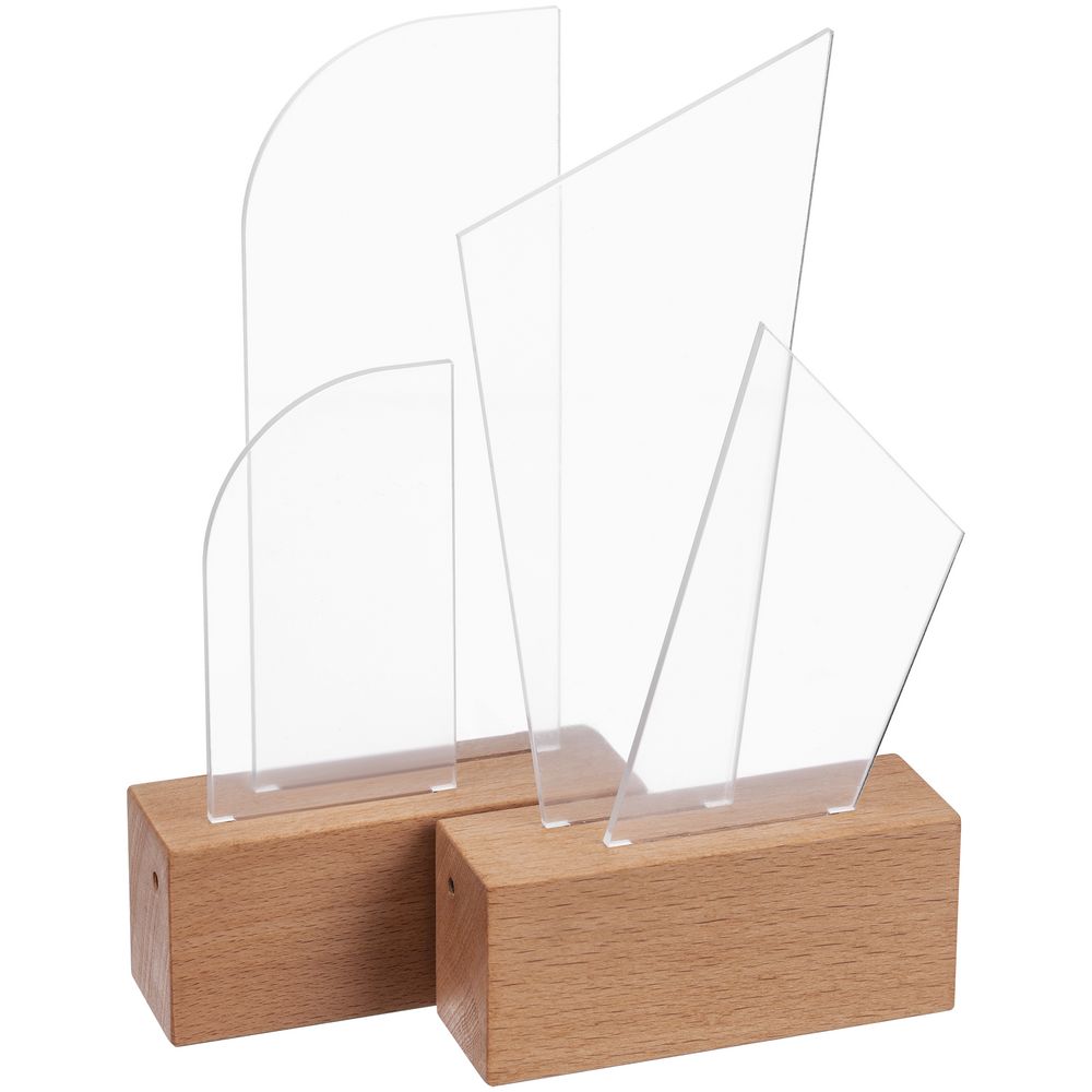 Стела Twin — это массивное основание из бука с гладкой фактурой и легкая прозрачная вставка из двух листов акрила. Идеальный баланс устойчивости и легкости, который важен не только для создания награды привлекательной формы, но и для достижения результата, который этой наградой будет отмечен.