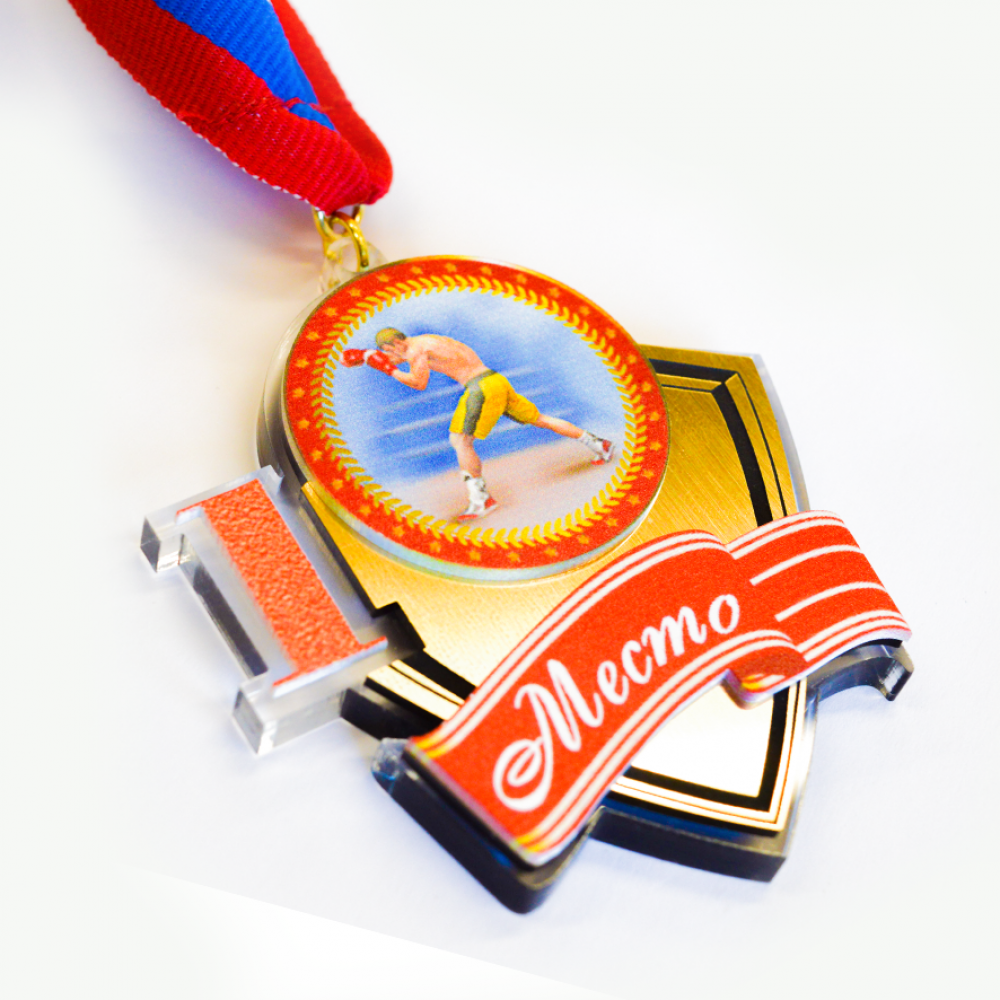 • Медаль из акрила с платиком 3-слойная (один слой пластика) с УФ-печатью