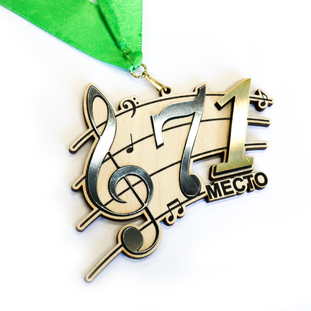 Медаль из дерева с пластиком 2-слойная, с гравировкой