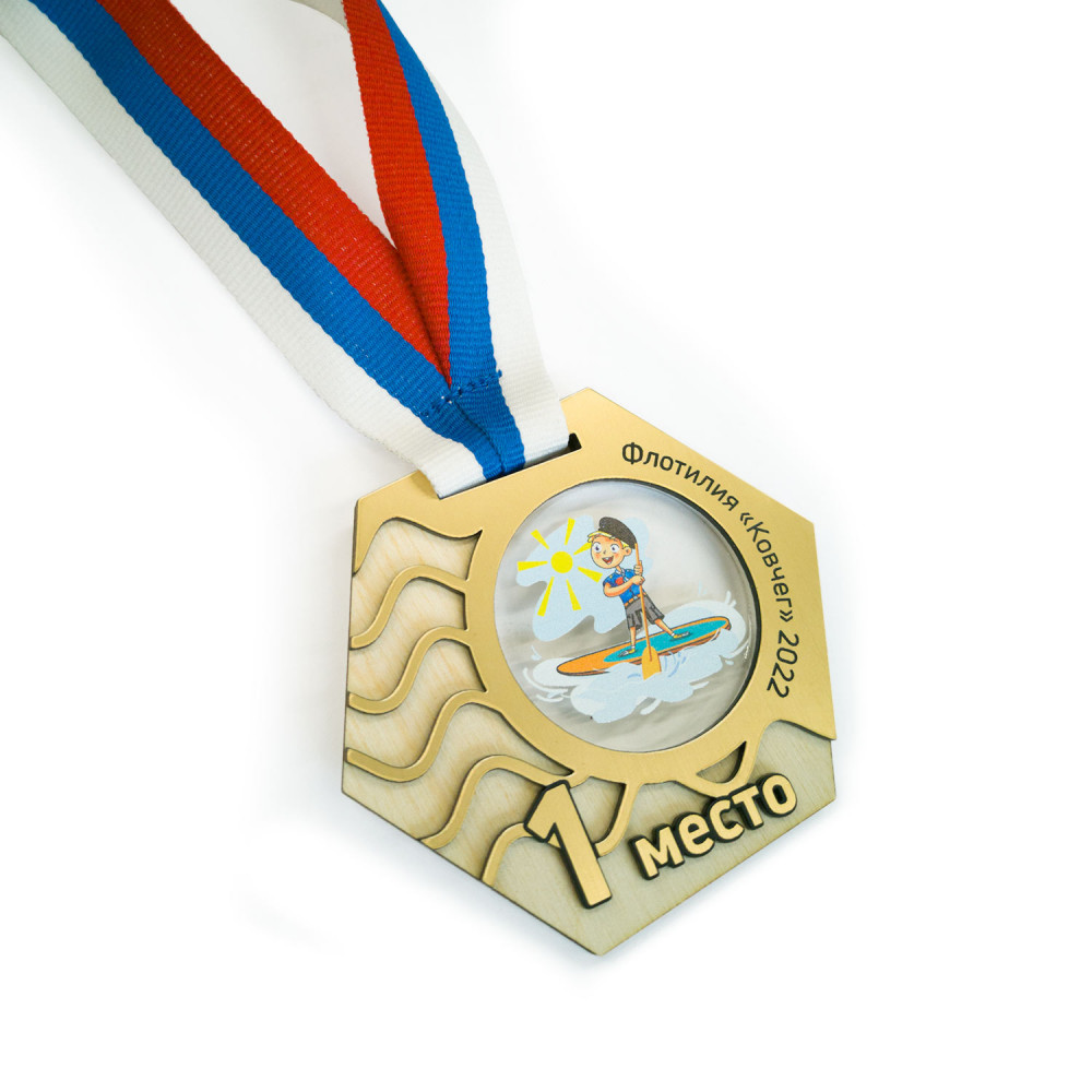 Параметры: Медаль из дерева с акрилом и пластиком 3-слойная, с гравировкой