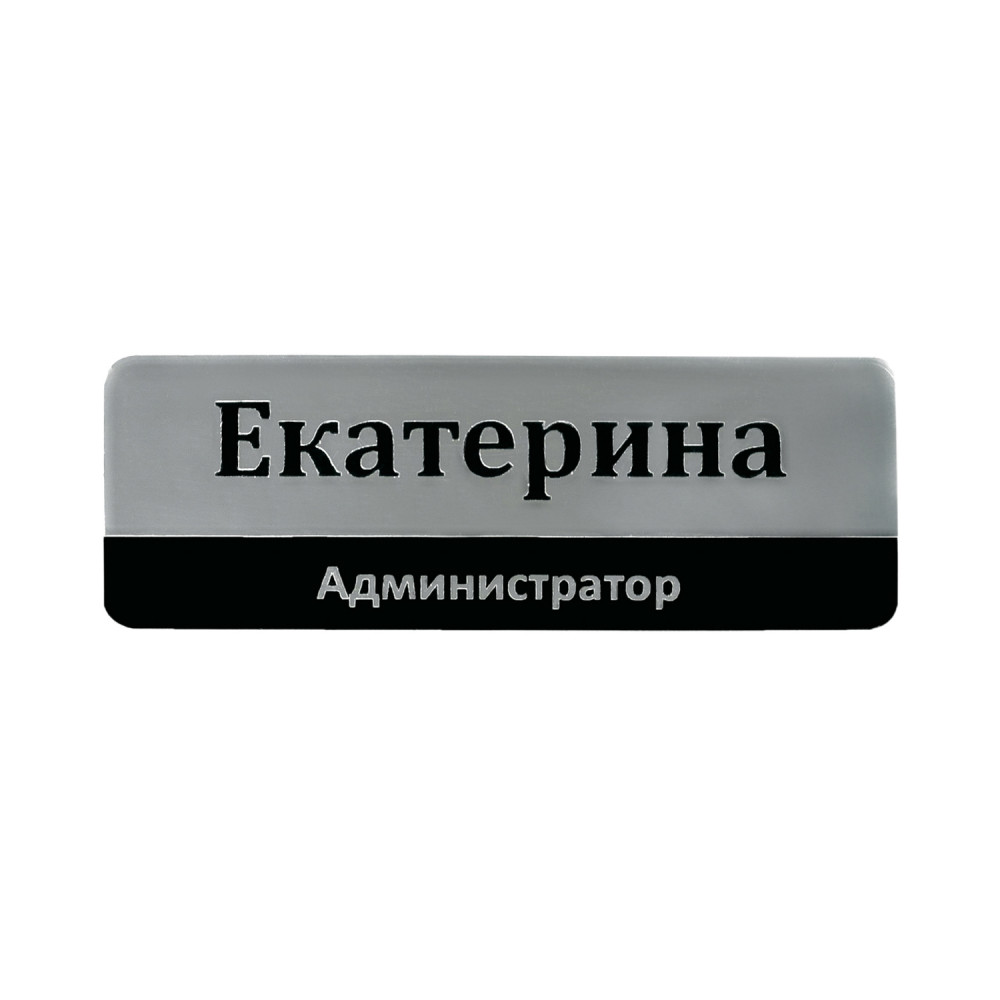 Материал - двухслойный пластик. Он состоит из двух слоев разного цвета - основы и верхнего слоя. Основа: черный, белый, либо прозрачный пластик толщиной 0,8 – 3,2 мм. Верхний слой: специальное покрытие различных цветов, фактур и степени глянца. Пластик - наиболее практичный для бейджа материал, стойкий к загрязнению, царапинам и воде.