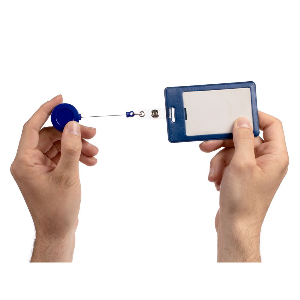 Ретрактор крепится к одежде, а с другой стороны можно поместить бейдж, визитку или магнитную карту. В корпусе спрятан сворачивающийся шнур, который позволяет при необходимости демонстрировать содержимое держателя, не снимая его.