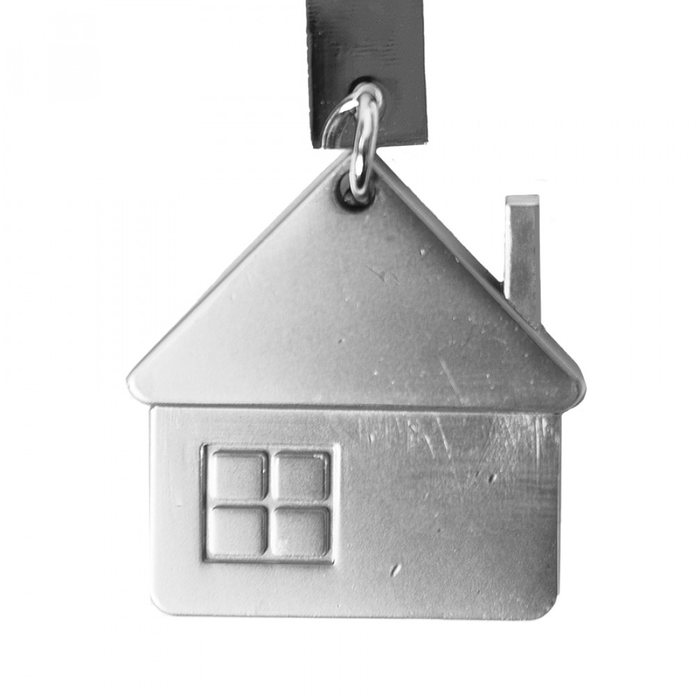Металлический брелок с интересным дизайном дома и элегантной матовой отделкой.