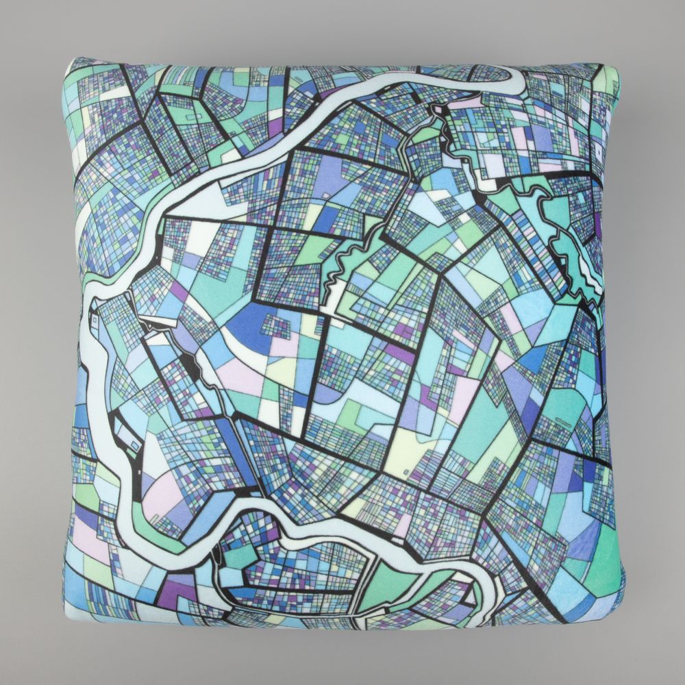Подушка наполнена гранулами вспененного полистирола, легко меняющими свое месторасположение внутри чехла, — так изделие легко меняет форму, подстраиваясь под контуры тела.