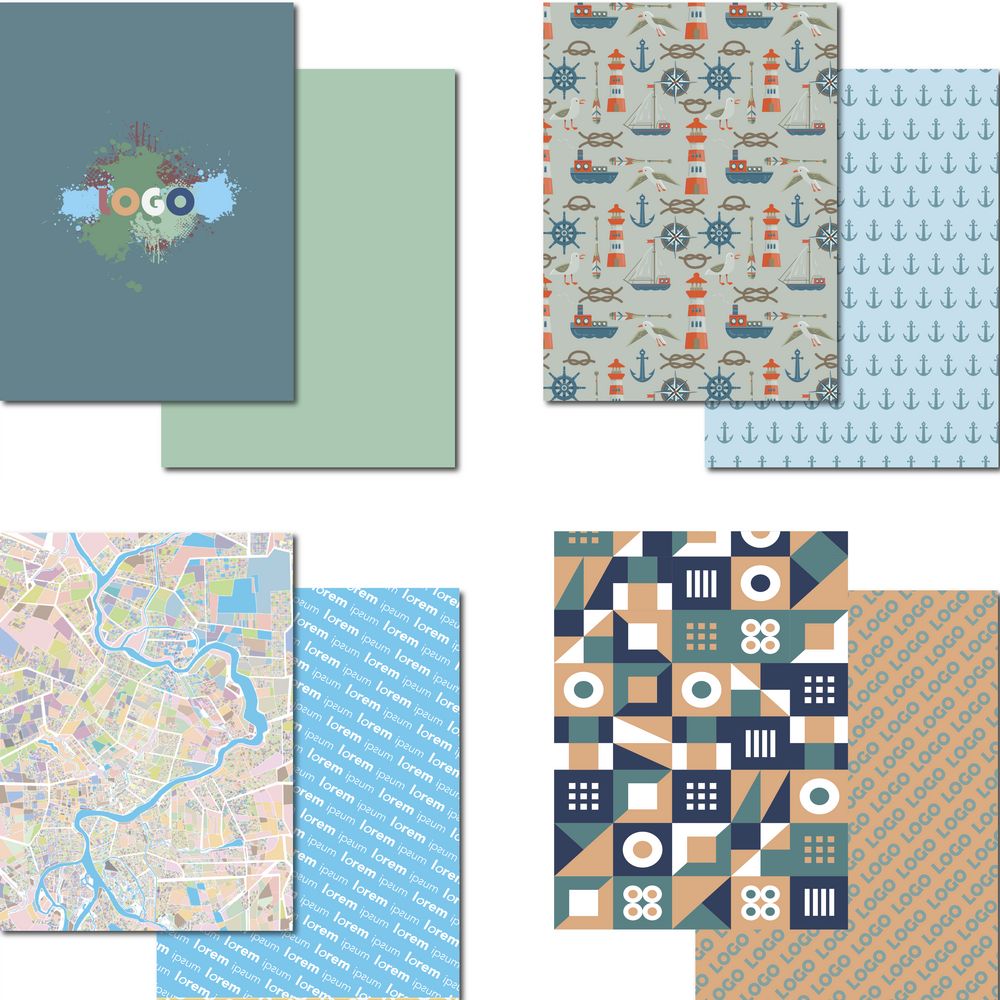 - Лицевая сторона может быть с индивидуальным макетом, оборотная — только с паттерном (базовым элементом орнамента, частью узора/логотипом, повторяющимся многократно в художественном оформлении ткани).