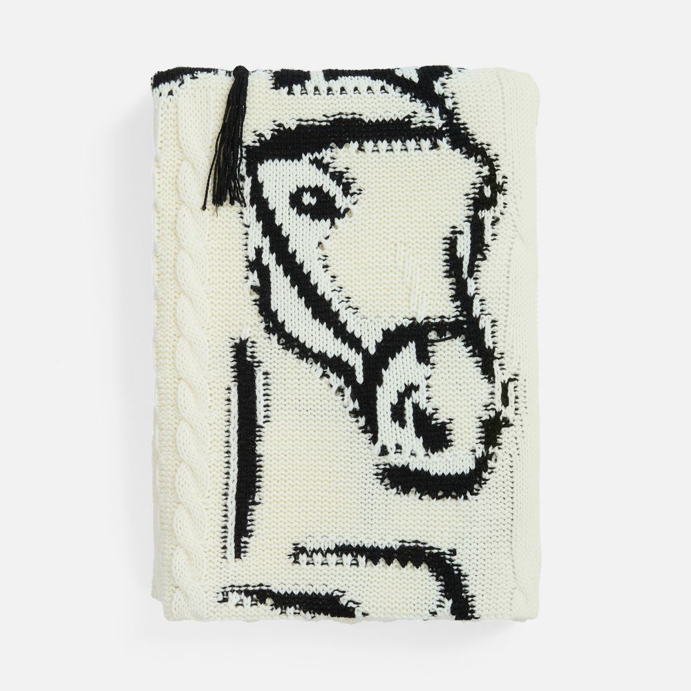 Дизайн пледа «Курбет» — интересная вариация на тему того, как лаконично, всего несколькими штрихами изобразить сразу многое, а еще с легкостью привлечь внимание, вызвав умиление и улыбку. Вдобавок этот плед уникален тем, что при его создании было мастерски использовано 5 разных техник вязания.