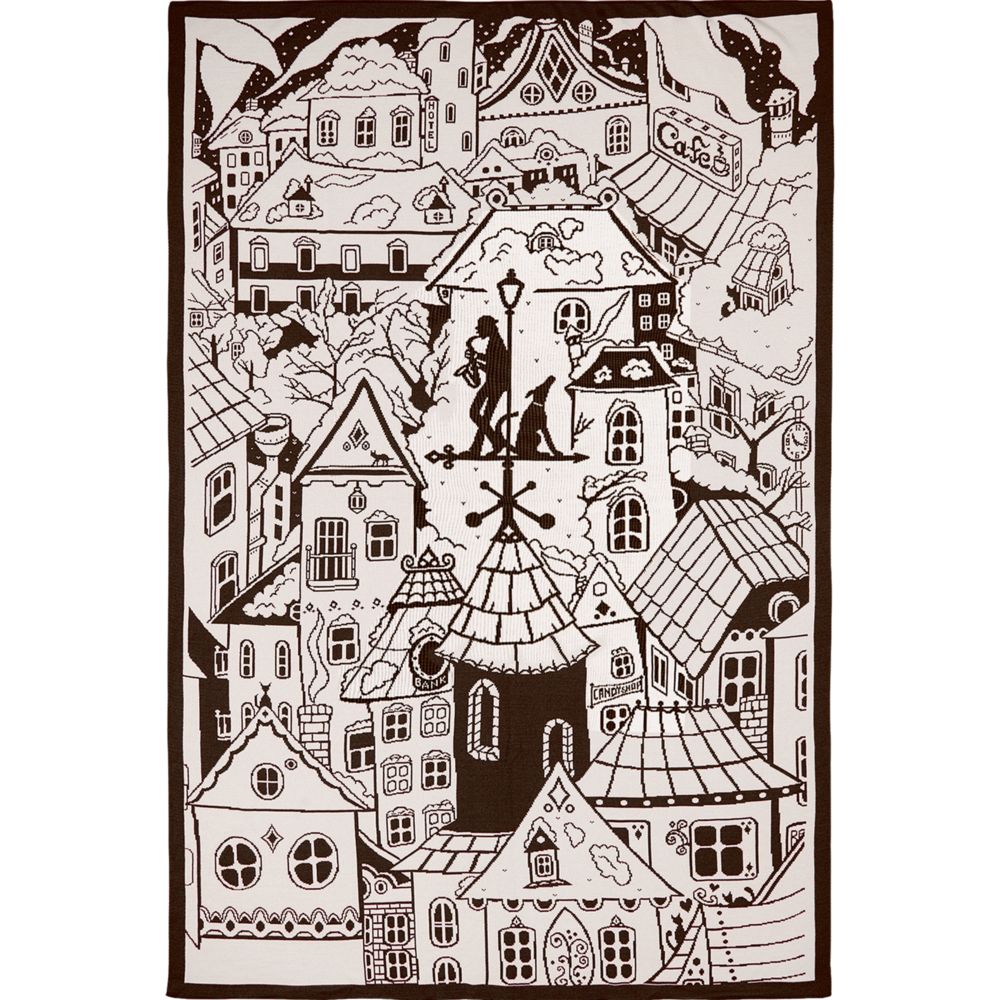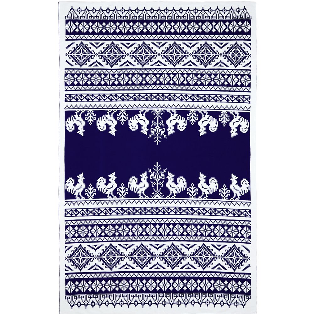 Плед с вывязанным логотипом и индивидуальным рисунком в фирменной цветовой гамме.