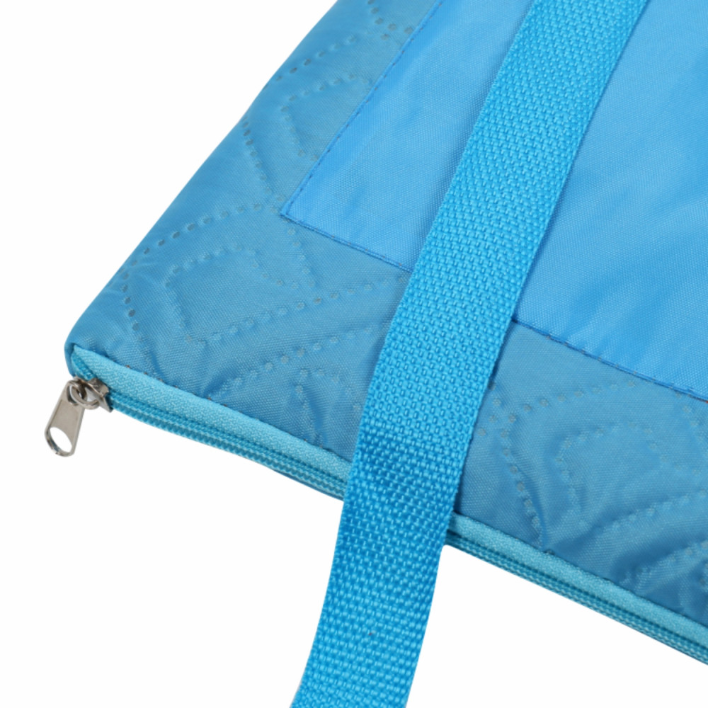 В разложенном виде размер пледа 115*145 см. В сложенном виде размер сумки 30*38 см, карман 22*31. Плед выполняет три функции: плед, сидушка и сумка. Плед трансформируется в удобную сумку, которую можно использовать в качестве сидушки. Карман подойдет для хранения мелочей и документов. Внутренняя сторона выполнена из мягкого флиса, внешняя из полиэстера с водоотталкивающим покрытием.