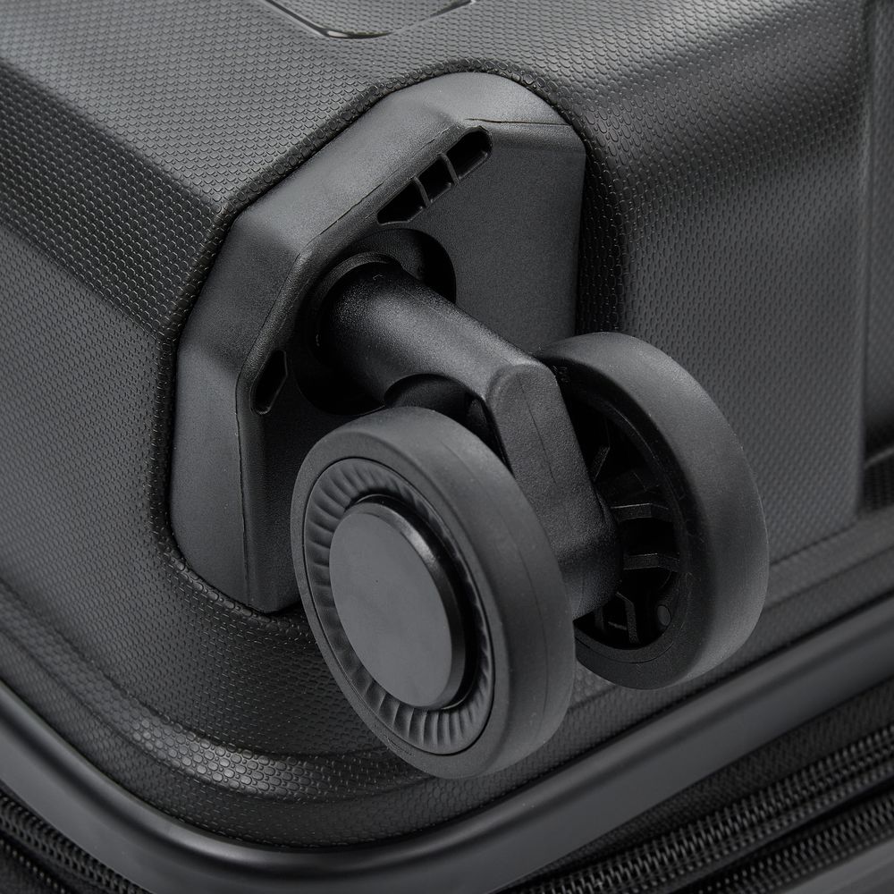 • Блок крепления колеса встроен в корпус чемодана, что обеспечивает лучшую устойчивость к внешнему воздействию