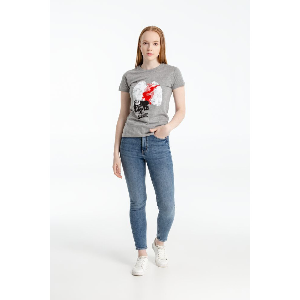 Футболка женская «Ты у меня вот здесь», серый меланж
