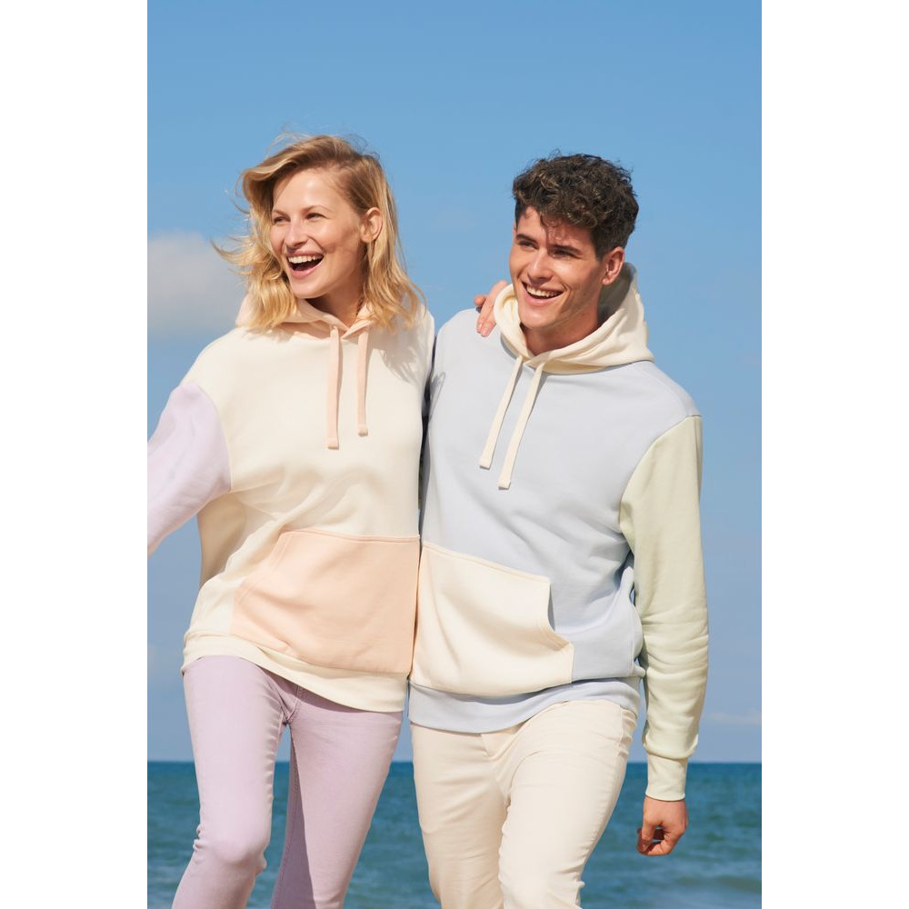 Трехцветное утепленное худи унисекс из органического хлопка и переработанного полиэстера.