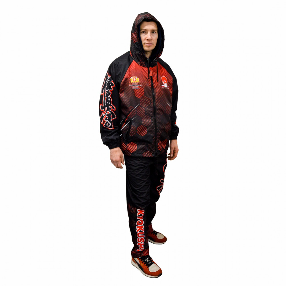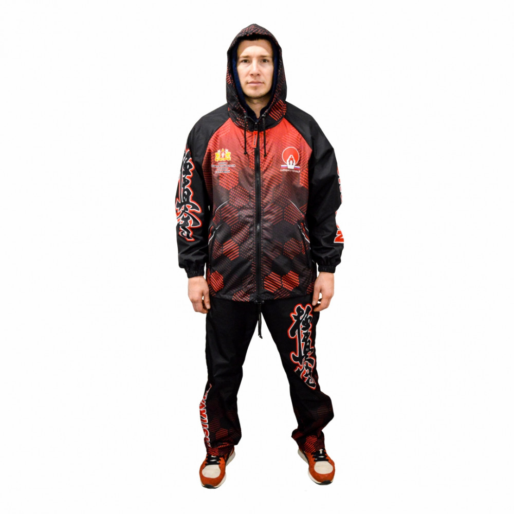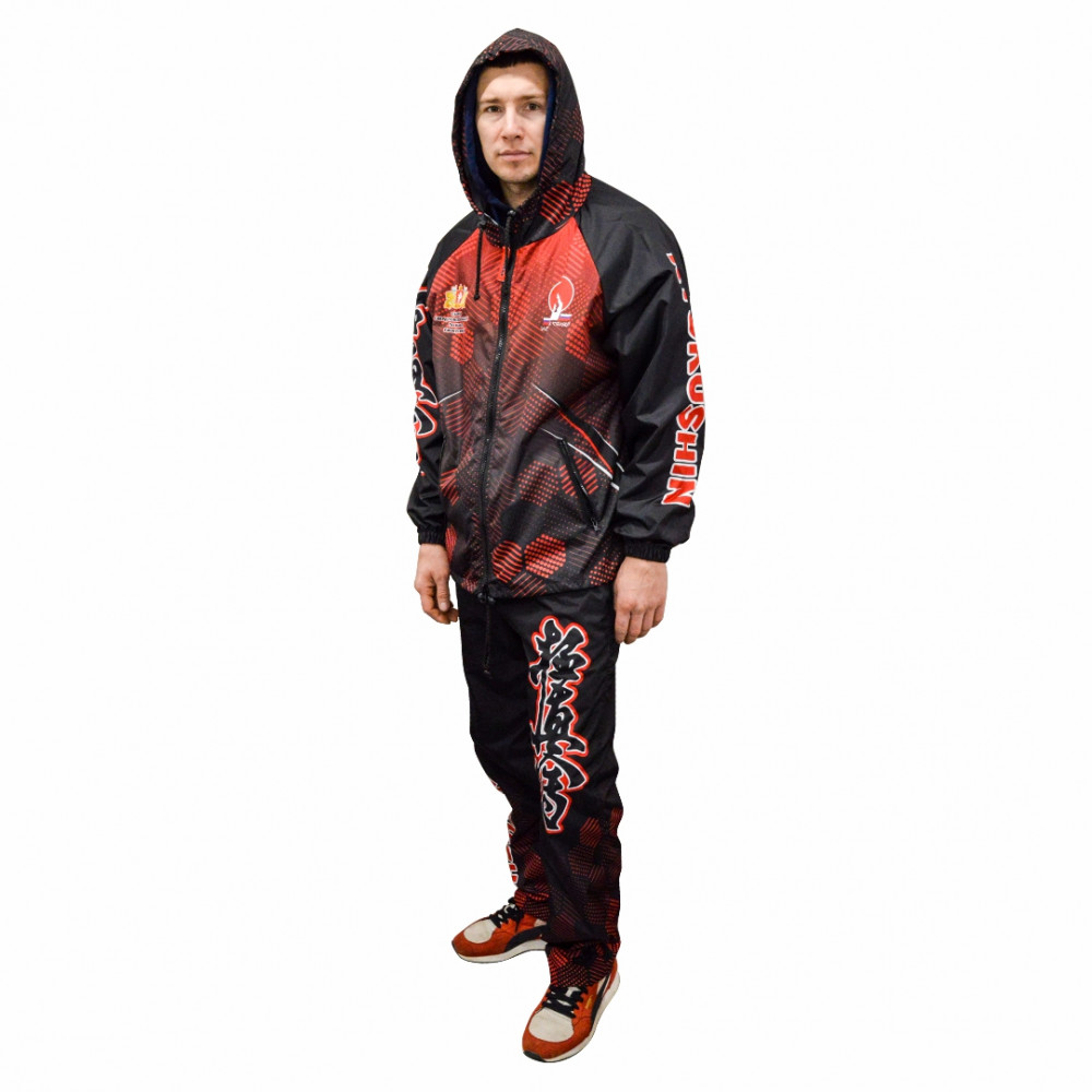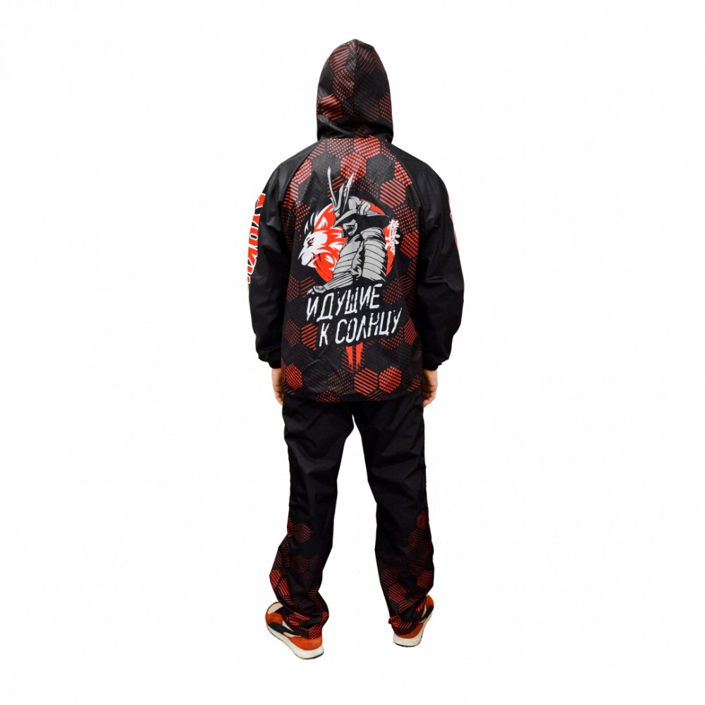 Взрослый костюм "Фабрика рекламы ОЛИМП" обеспечивает свободу движений и комфорт во время занятий спортом. Ветровка с капюшоном и брюки создают идеальную посадку, позволяя вам чувствовать себя уверенно и комфортно.