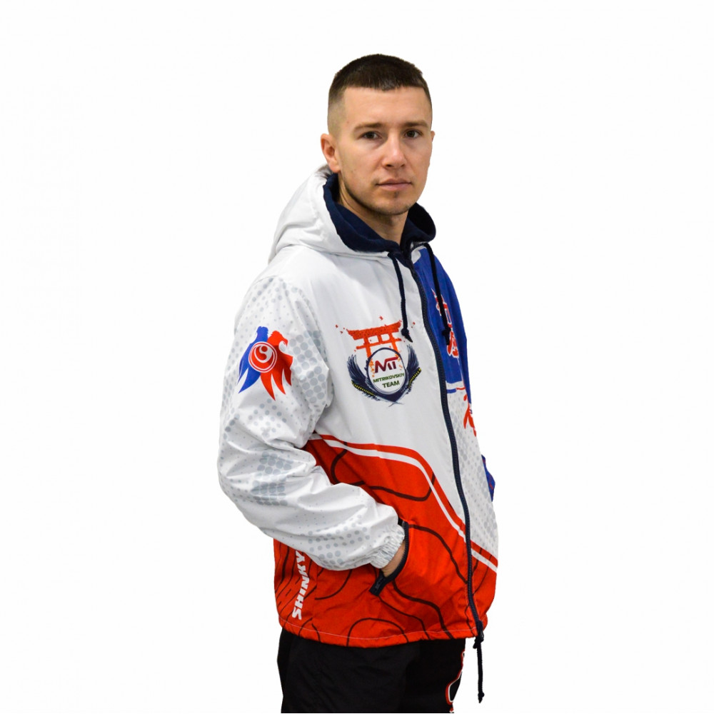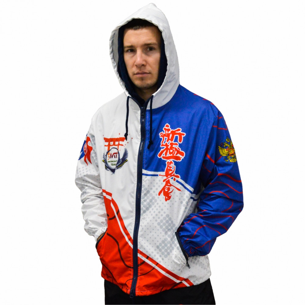 Представляем вам стильный и практичный костюм от "Фабрика рекламы ОЛИМП"! Этот костюм состоит из ветровки с капюшоном и брюк и идеально подойдет для спортивных тренировок и повседневного использования.