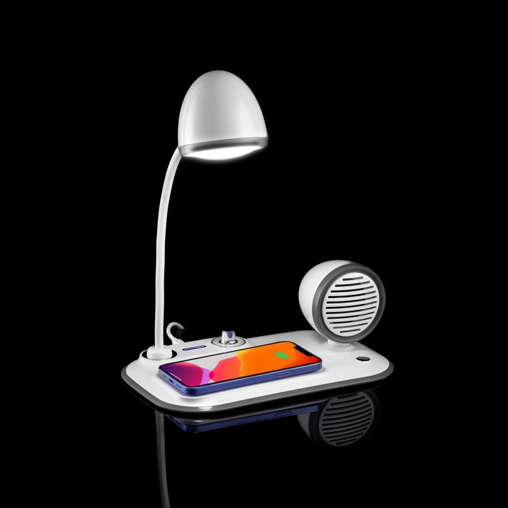 • Лампа с колонкой и беспроводной зарядкой Flashback, белая