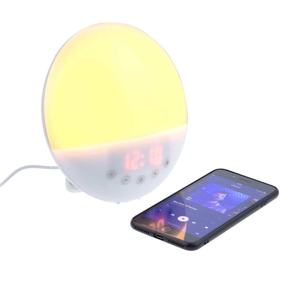 Мультимедийная станция dreamTime позволяет синхронизировать пробуждение и засыпание с естественными природными ритмами благодаря световой имитации рассвета и заката.