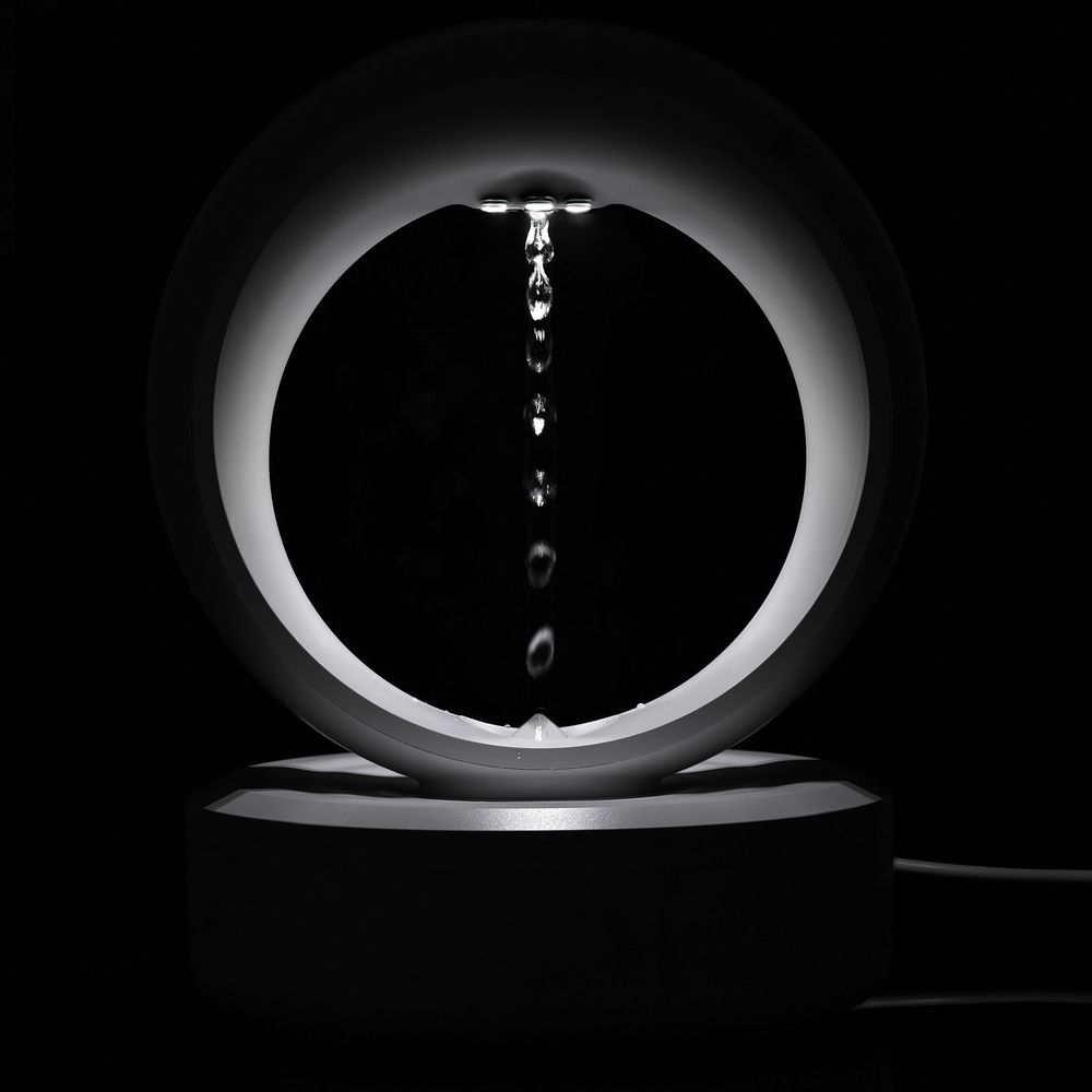 Благодаря специальной подсветке можно часами завороженно наблюдать, как капли воды, будто преодолевая гравитацию, поднимаются вверх и замирают в воздухе, или движутся вниз — ощутимо медленнее, чем это предписывается законом всемирного тяготения.