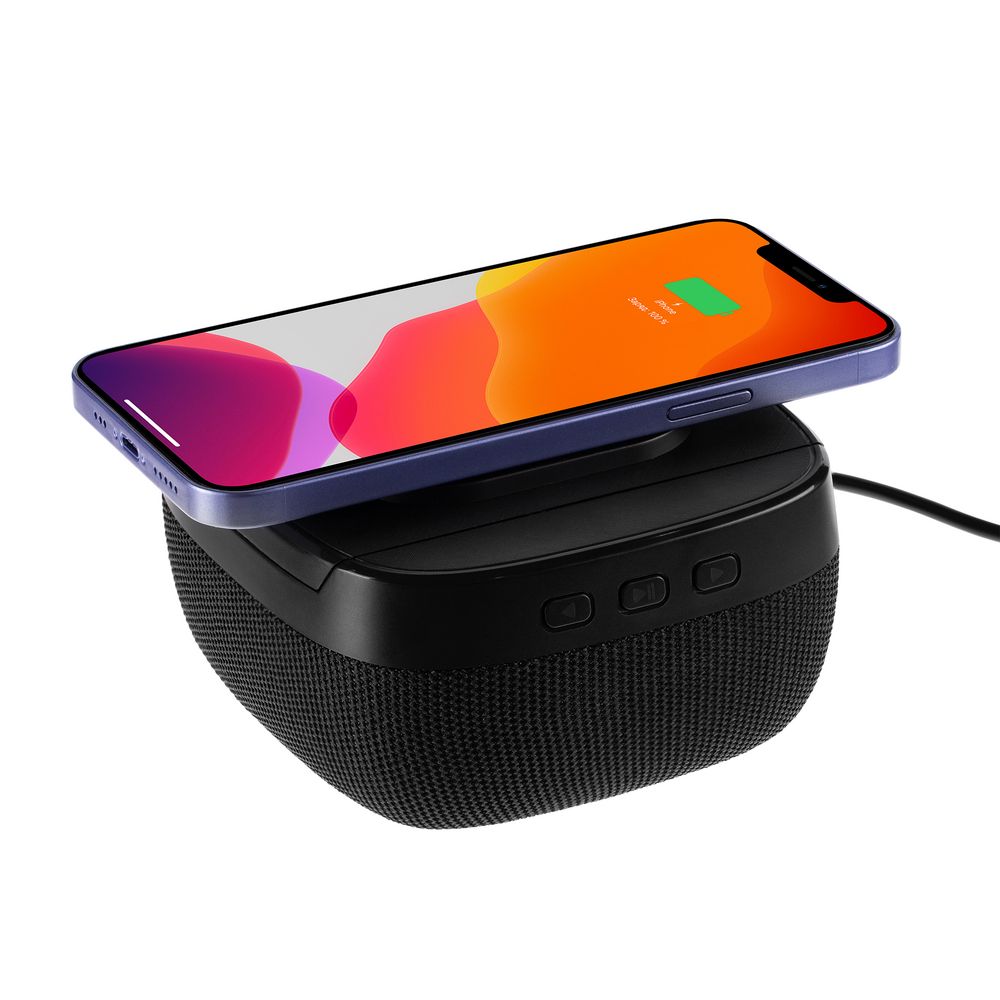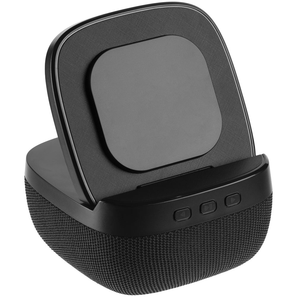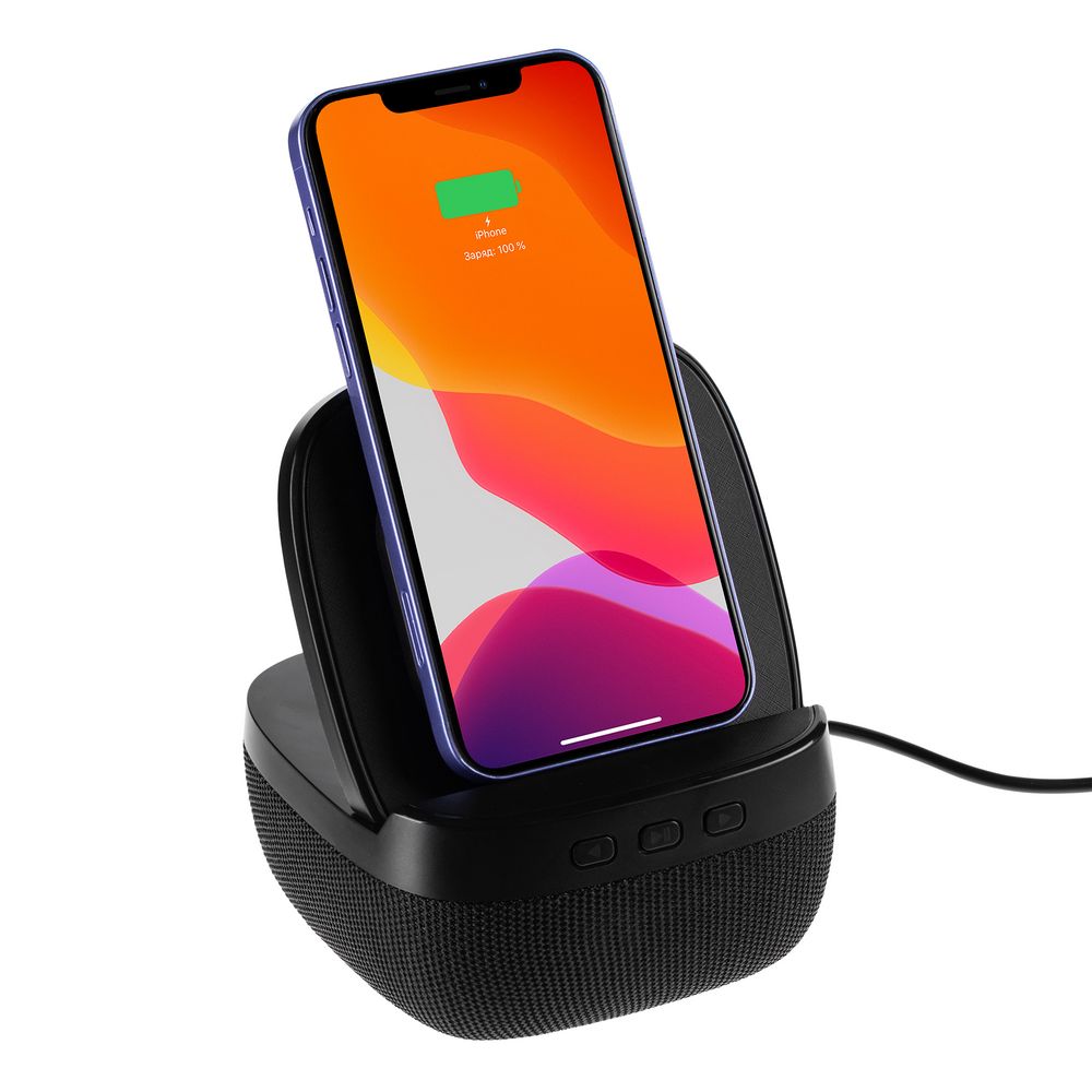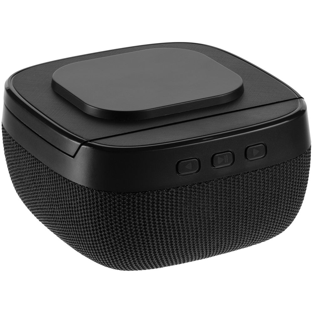 Колонка с беспроводной зарядкой Esca и подсветкой логотипа, черная
